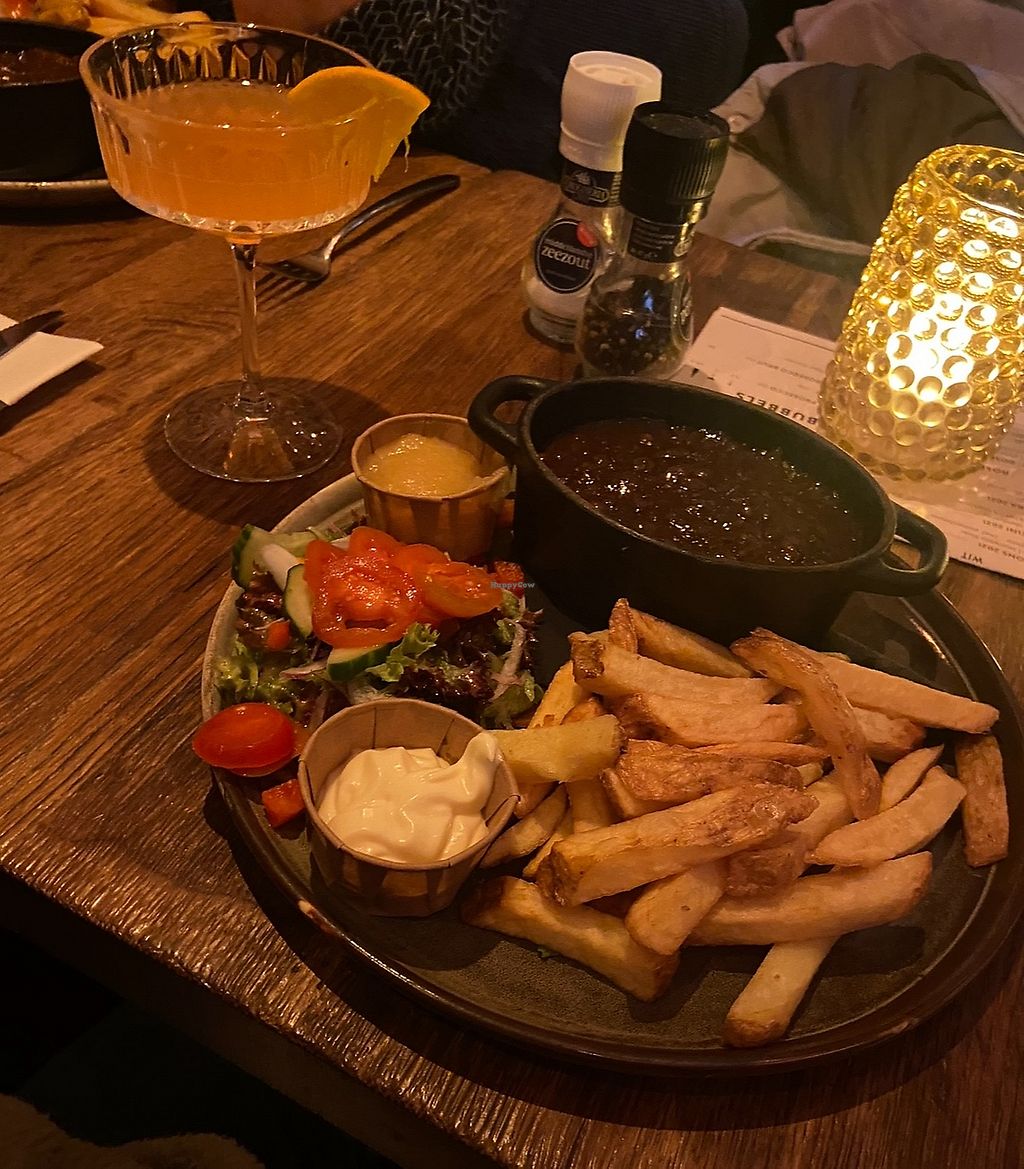 We had the vegan fish and chips and vegan mestreechse zoervleis. There are not so many vegan options on the menu and maybe a bit pricey, but the food was very good.