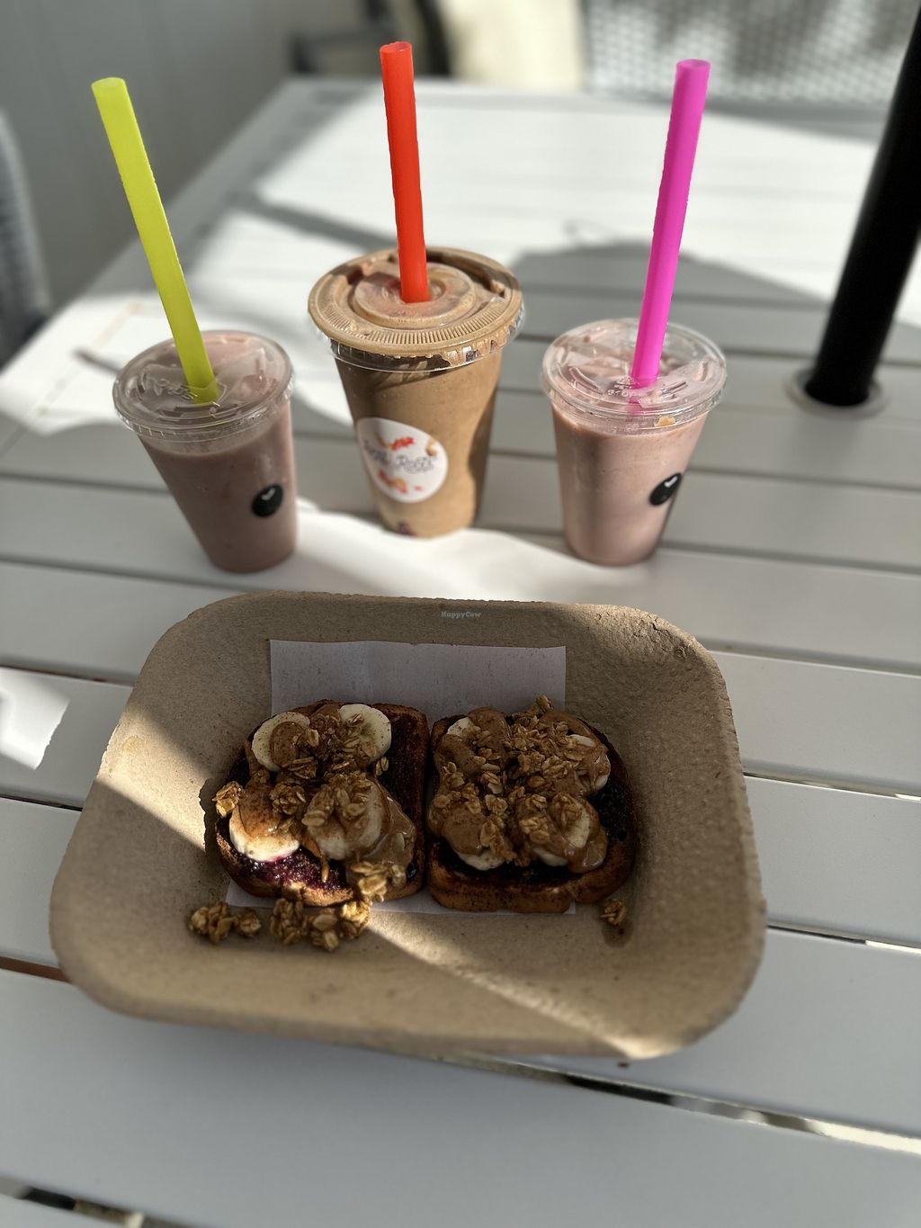 They offer a few vegan options. I did try the Java joy, jr banana berry and a banana breakfast toast, they were all good.