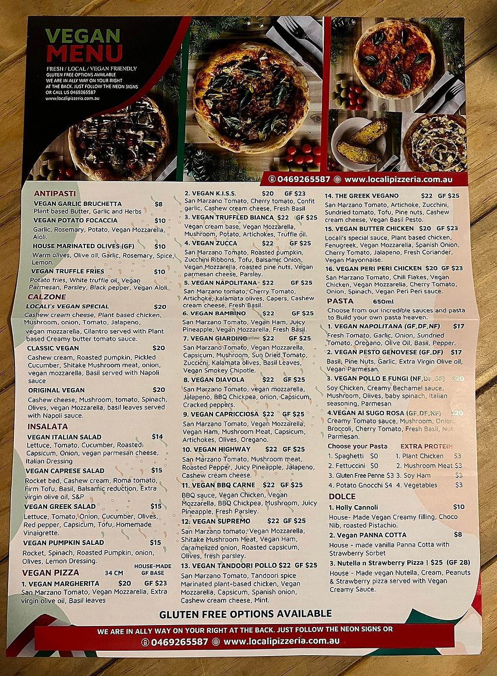Best vegan pizza and calzone we’ve ever had in Gold Coast! The base and crust was just perfect, vegan cheese tasted so delicious unlike many store bought dairy free cheeses. Arancini balls as well as Cannelloni desert were incredible tasty too. Also have to add how friendly the person who served us. Highly highly recommend this place!!