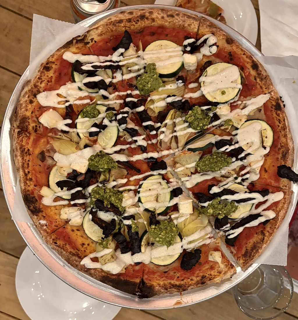 Absolutely amazing pizza. Helpful and friendly staff. A huuuuuuge creative menu for vegan options and the taste lived up to the expectations. Had the Giardino and would buy again!!!! Reasonably priced and great service. Big fan. Wish I lived closer!!