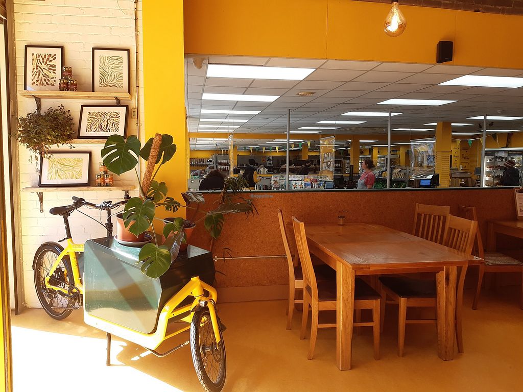 Nice atmosphere with friendly staff. Sells meat etc but still has some good vegan options.
