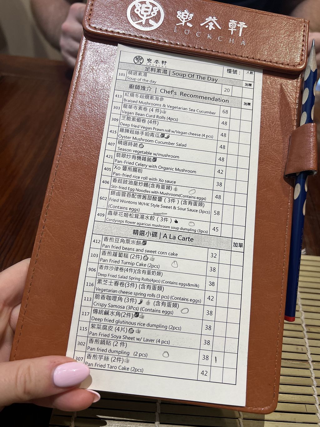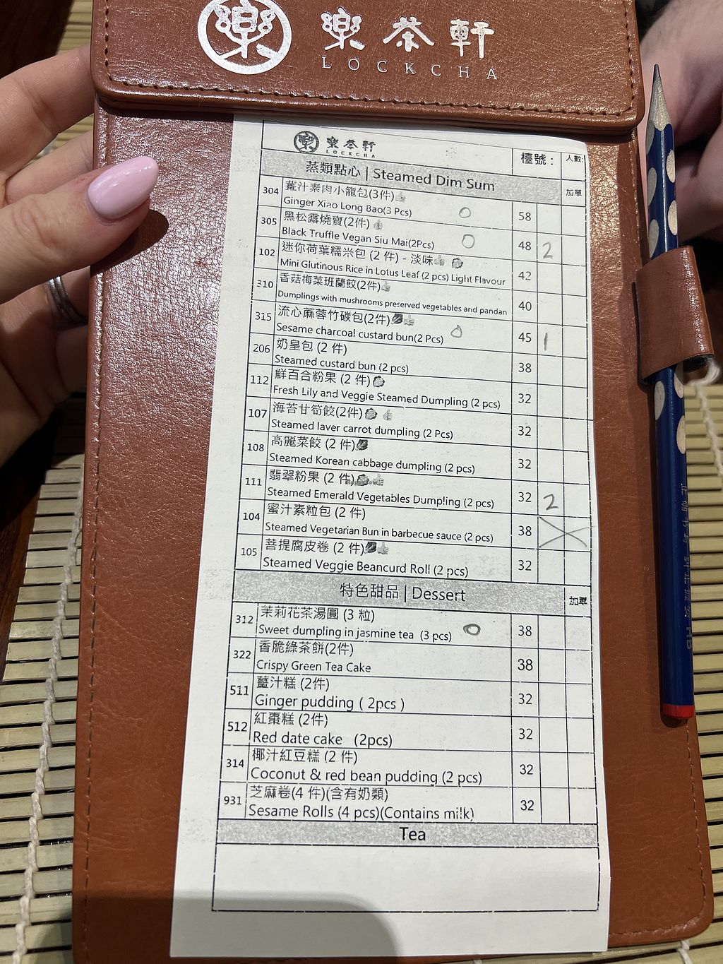 LockCha Admiralty serves not only the widest variety of fine teas but an expansive selection of all-vegetarian dim sum dishes (with loads of vegan options). It took us quite a while to order since their teas vary from all regions of China promising a wide array of health benefits. Even their dim-sum menu was impossible to choose from!