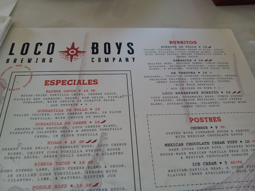 vegan options (V), vegetarian (VG)