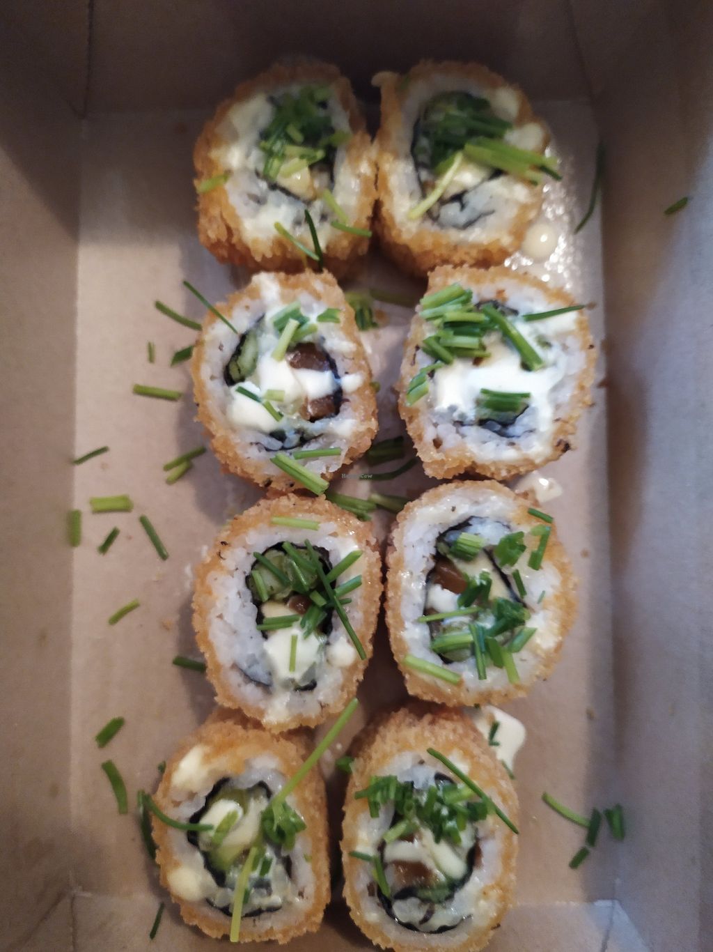 Habibi Durce Sushi. Crunchy Topping mit karamellisierten Zwiebeln