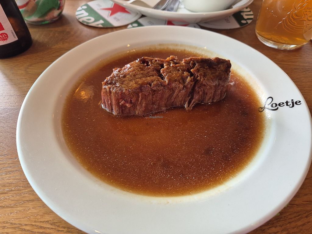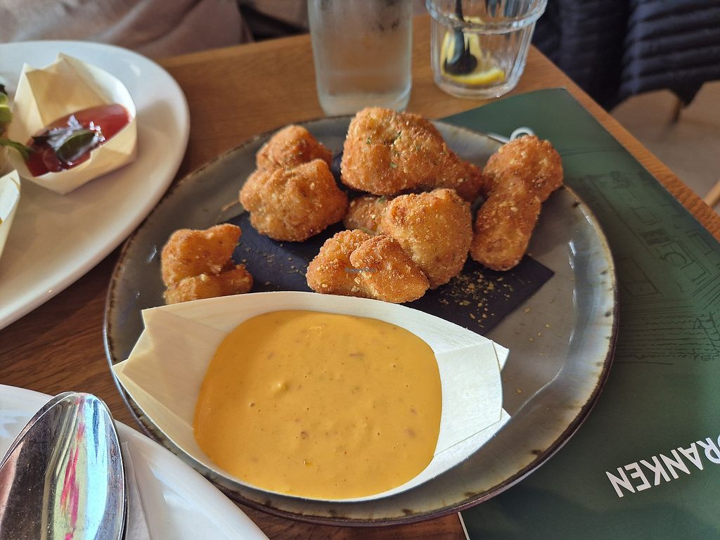 Came for a very late lunch, just before dinner time. It was still nice and sunny outside but we were not allowed to seat on the terrace since they were about to close it at 17 due to company policy... Found it very inhospitable . Service was minimal, had to get the menus myself or keep waiting. We are vegan so we tried most of the vegan options. The printed stake is nice, but very overpriced. Cauliflower "kibble" was good. Biet burgers was okish. In short, not too tempting for vegans, especially if it's a nice day - I'd advise you to find another terrace that you can actually to sit in.