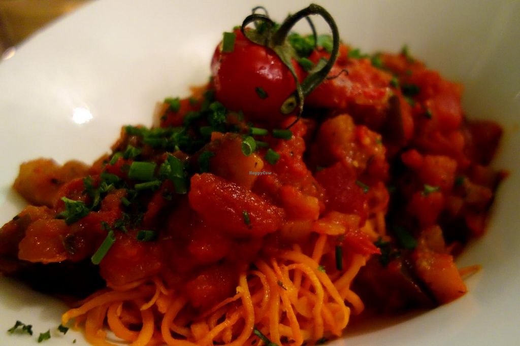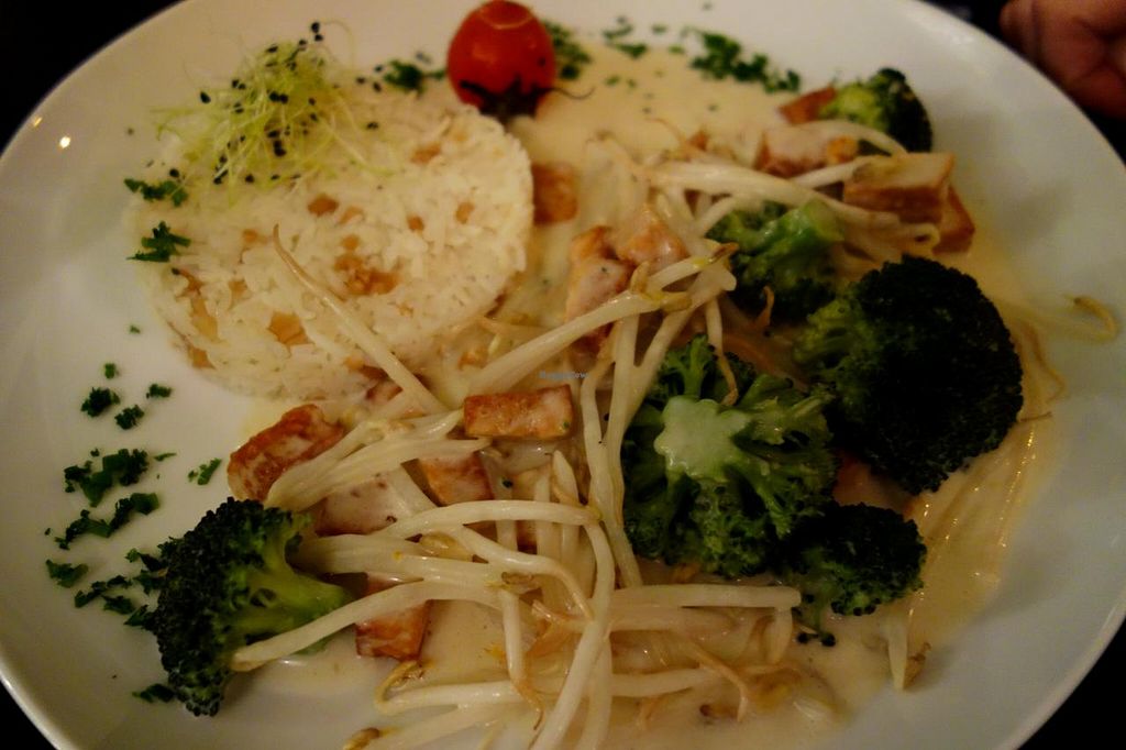 We tried and shared three different dishes (no "Käsespätzle"!) including a selection of starters. Our main dishes were fried tempeh with soybean sprouts and broccoli in coconut milk with peanut-basmati rice / creamy risotto with eggplant, roasted pine nuts, stewed tomatoes and marinated rocket salad / pasta made of sweet potatoes with eggplant-tomato sugo. Everything was just great and the staff was very helpful and friendly as well. We had a wonderful evening and also my friends really liked the food.