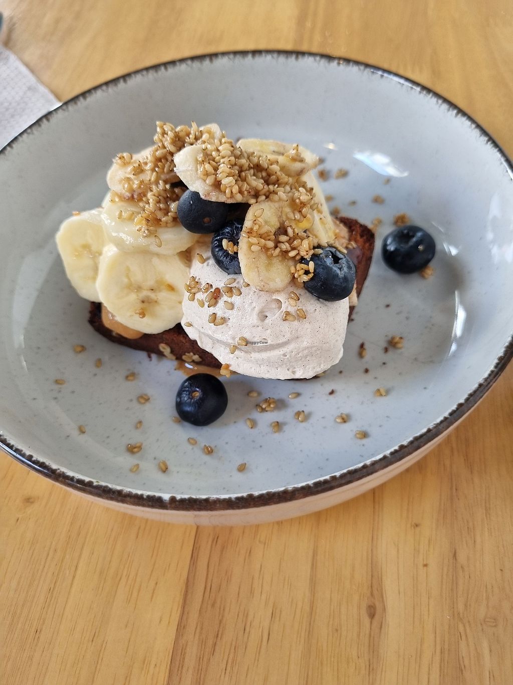 Banana bread with peanut butter, banana, and blueberries (the whipped …