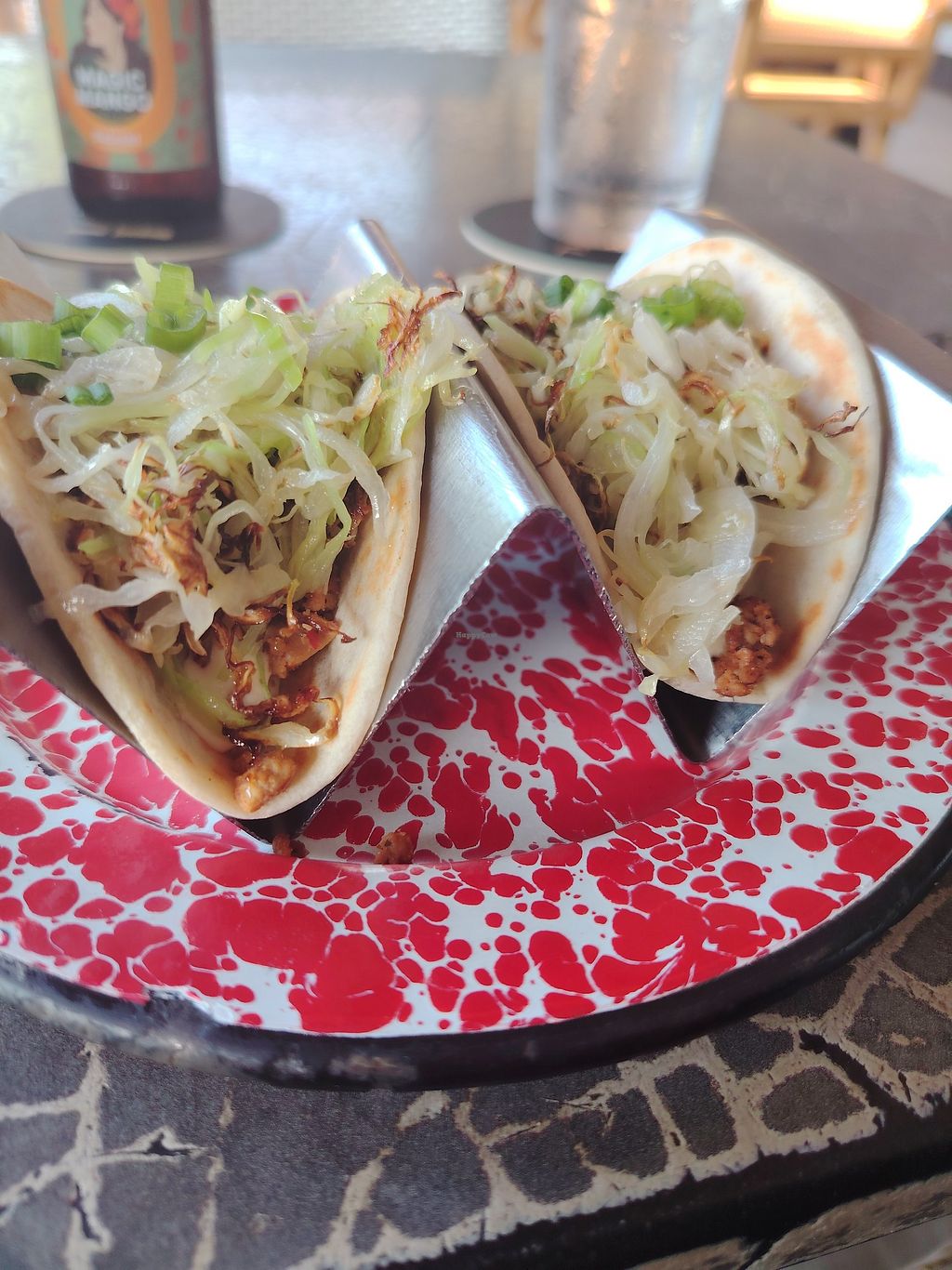 Cons: Brussels sprout tacos were burnt, Thai ai ai tacos were just ok, tortilla was raw., Out of no chicken chik’n taco & guacamole