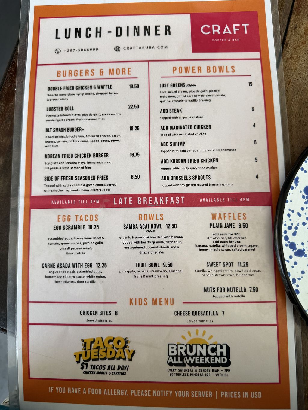 We went for taco Tuesday as we heard tacos there would be $1 all day. However, we found out once there that the vegan options were not included in the deal. We decided to try it out anyway, and their vegan tacos and power bowl were enough for a light, satisfying lunch on a hot Aruban day.