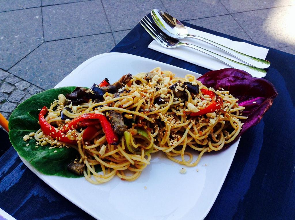 Vegan Pasta with vegetables and peanut butter