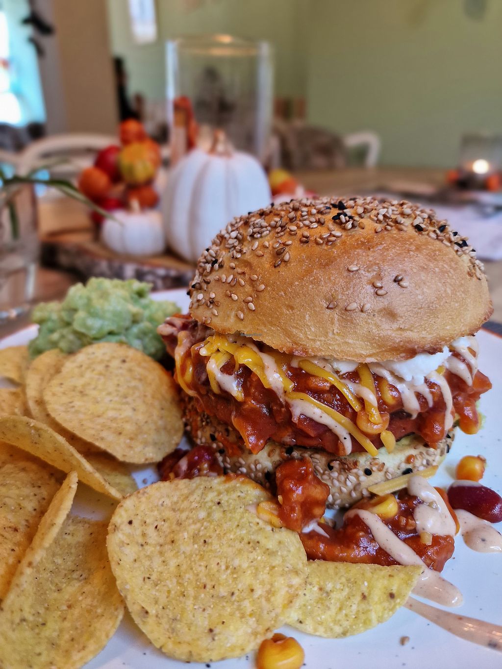 We hadden een vega burger met Chili sin carne besteld. Deze smaakte uitermate goed. Bij de koffie kregen we eigen gemaakte bounty die volledig vegan was en overheerlijk smaakte.