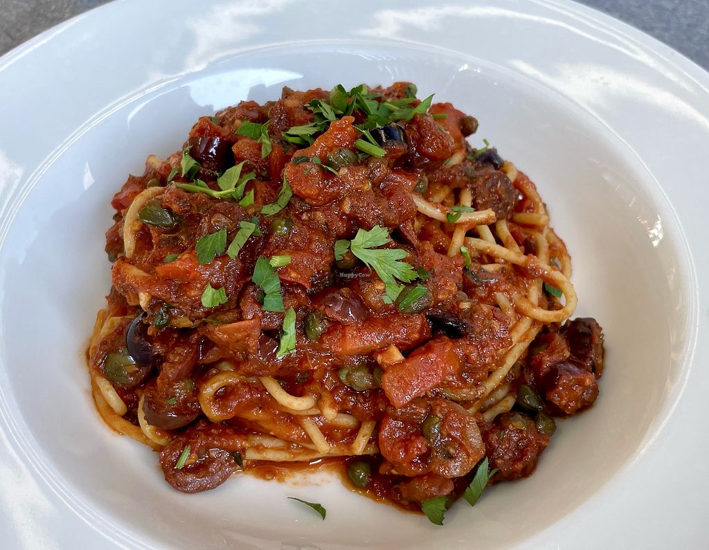The spaghetti was so good I didn't even care that it was pretty simple. Sauce tasted fresh, portion was pretty big. A lil pricey but worth it. One star deducted because I would love to have more than one vegan option on the menu, but with that said it was a reeeeally good option