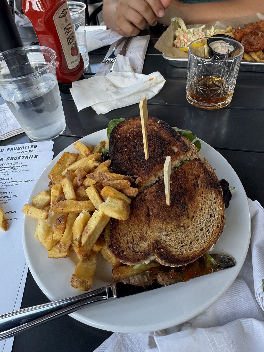 the drinks are great and now they have plenty of vegan options! granted most are in the shareables section but the cauliflower wings and beets sandwich were spectacular. the cauliflower wings were definitely the highlight though - super crispy coating with this amazing apple bbq sauce that was sweet and tangy at the same time. you could really taste the apple flavor which made it way more interesting than regular bbq sauce. the beets sandwich was surprisingly filling too, with these tender roasted beets that were sweet and earthy, plus some kind of creamy spread that tied everything together. honestly didn’t expect to leave feeling this satisfied from vegan food at a place like this, but they really nailed it. definitely going back to try more from their plant-based menu
