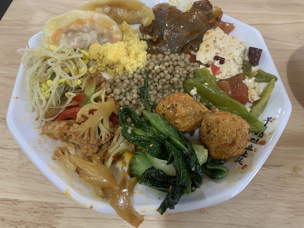Small Buddhist themed Chinese style all you can eat vegan buffet. Food is simple and tasty, no too oily. Non spicy options available. Decent variety of dishes including stir fry veggies, soups, hotpot, noodles, fried rice, dumplings and beverages. Restaurant also has a small display area that sells packaged food products.