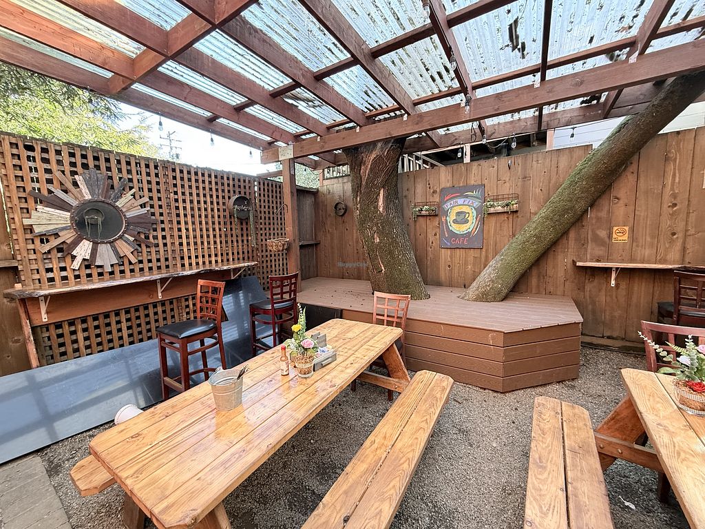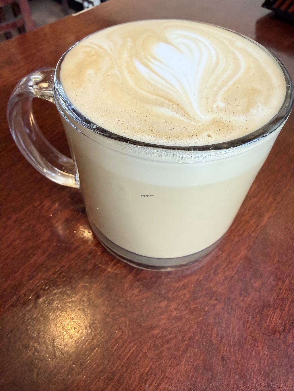 Delicious vegan default pita hit the spot with hummus and avocado, plus tabouli. Oat latte was really well made as well, cute outdoor patio and nice murals inside