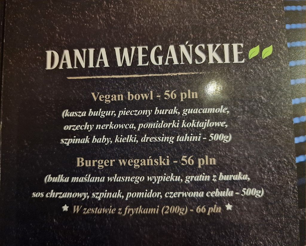 vegan burger in the menu