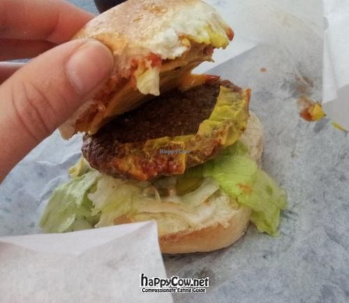 Told us all items on the menu were vegan, which is great! The burger was great, but the fries were a bit greasy. So fun that there is a fast food place like this for vegans, and it was really busy too!