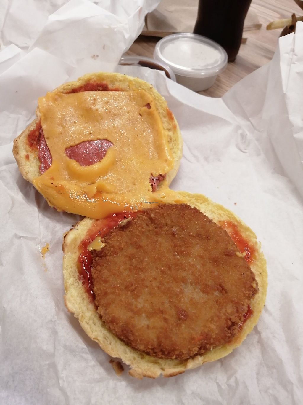 My first time eaten in this newly opened burger joint. Had a parma burger a burger slice of vegan cheese, vegan bacon topped with diced tomatoes in between white soft bap bun. Why they dont use either brown crusty rolls or toast the white bun? A serving of sweet fried potatoes, Had a oreo shake was very thin (not so decadent) have had oreo shakes in another place lovely, decadent and thicker. This does have seating as the other three places are takeaways. I did give it a HC sticker for being 100% plantbased.