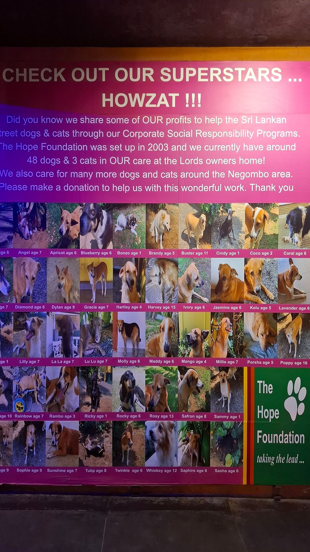 We also deeply appreciate your kind words about our corporate social responsibility initiatives. Through The Hope Foundation, which has been running for over 22 years, we are dedicated to supporting Sri Lanka’s street dogs and cats. Currently, we care for 48 street dogs and 6 cats as permanent residents at our owner’s home, ensuring they receive food, shelter, and medical attention. In addition, we also extend our support to vulnerable local communities, making a positive impact wherever we can. A portion of our profits from Lords Restaurant Complex directly funds these efforts, so every meal you enjoy with us helps to support these meaningful causes.