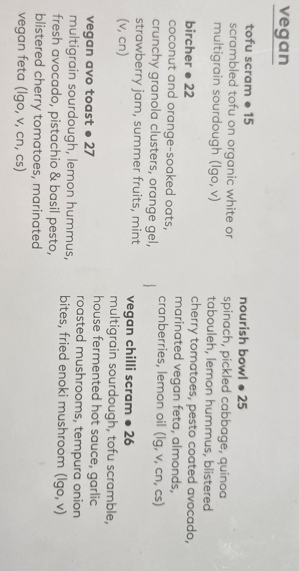 updated vegan menu