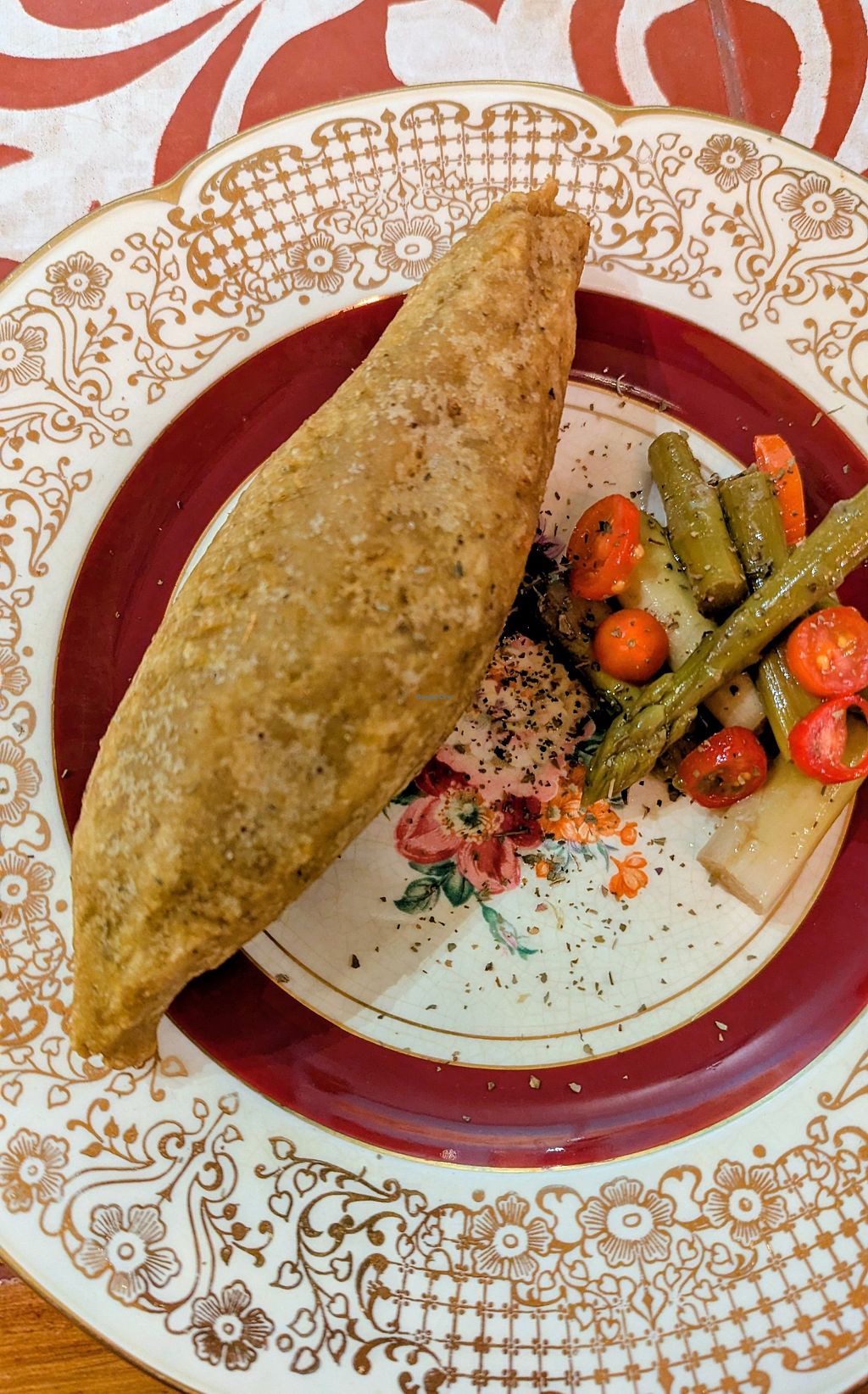 Lovely room that you could chill out in for the afternoon. The one lady running the place and cooking everything was lovely and spoke English. Most meals seemed to be microwaved, so my samosa was more soggy than crispy. Vegan options for most meals. My husband really liked his caprese sandwich.