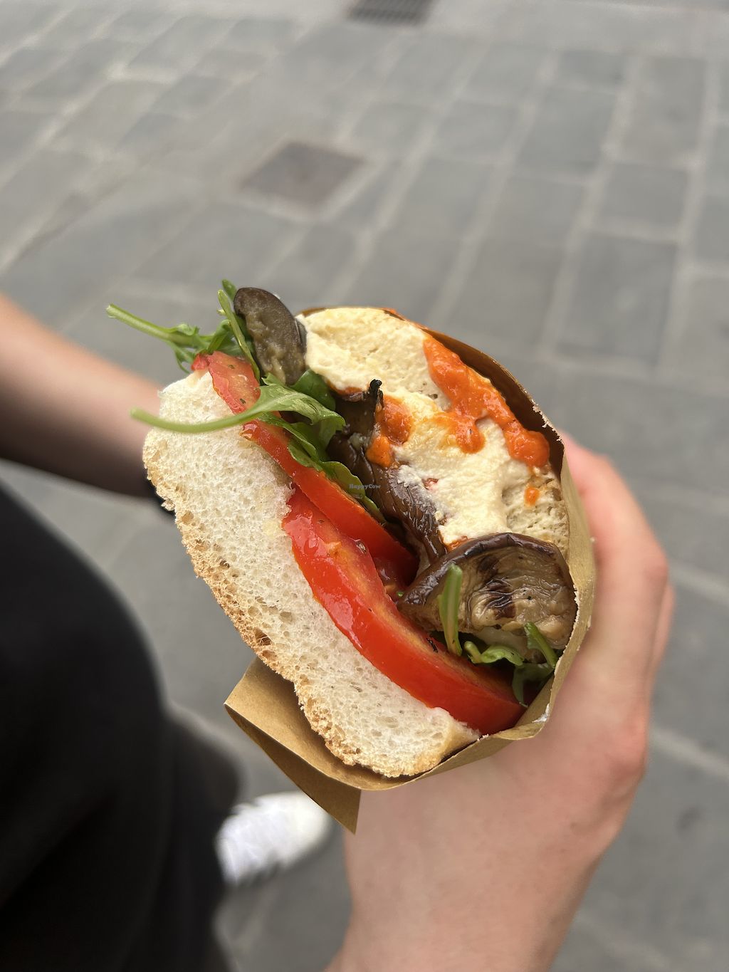 Had the ‘vegano’ - roast courgette, aubergine, sun dried tomatoes and olive tapenade. Really yummy and the sandwich is huge!