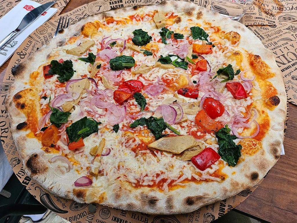 Hier gibt es eine gute Auswahl an veganer Pizza und Pasta. 😋 Leider kann man die Tische im Außenbereich für größere Gruppen nicht zusammenschieben. Aber die Portionsgröße ist super, sodass man für den nächsten Tag noch etwas übrig hat.