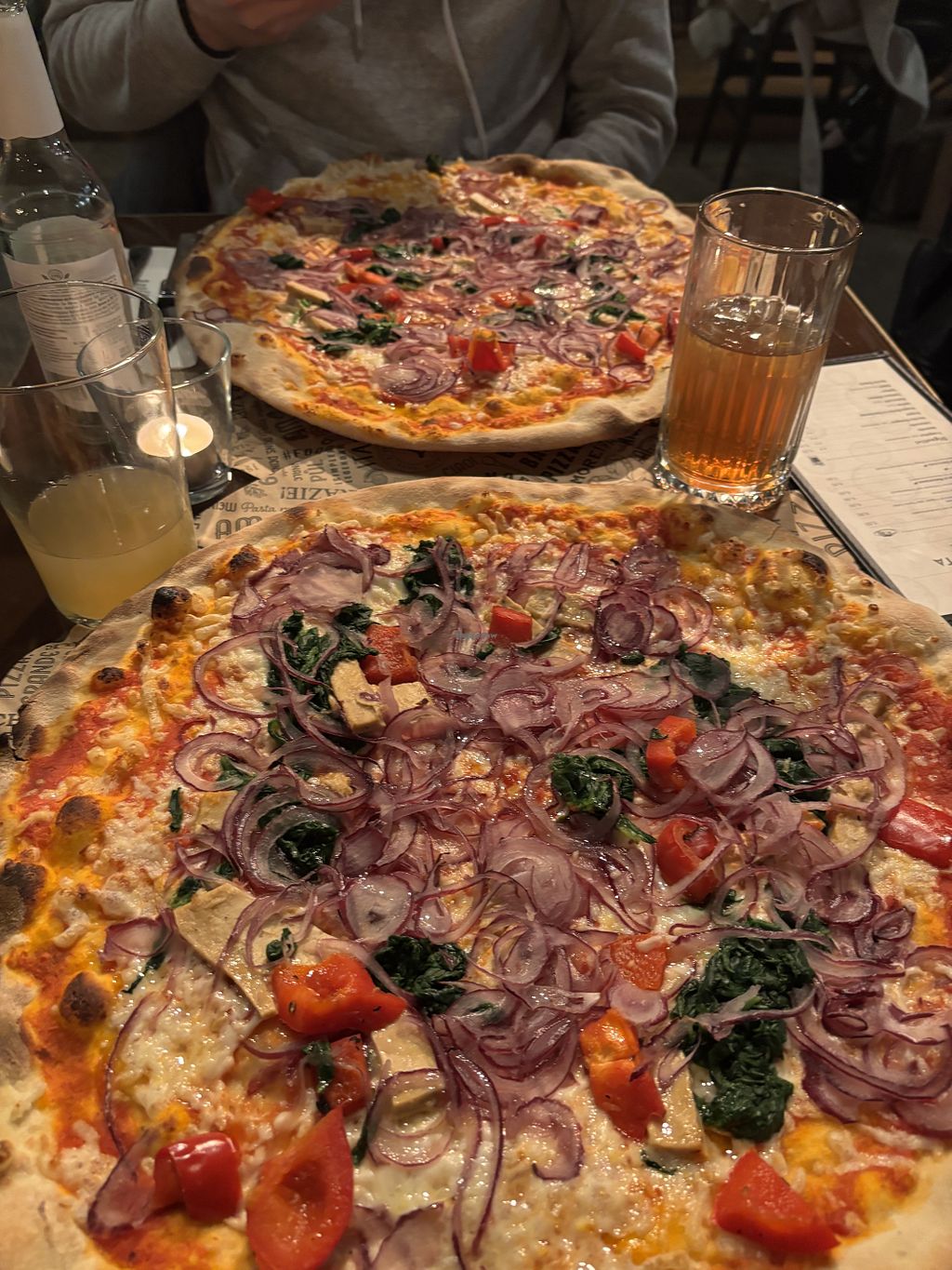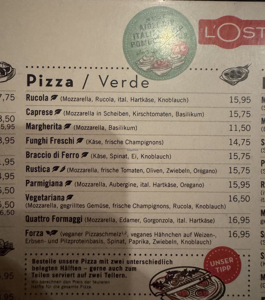 Menu (vegetarian/vegan pizza).