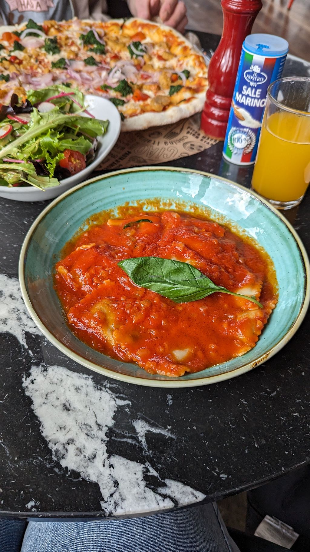 Die Ravioli waren lecker mussten aber nachgewürzt werden, zum Glück standen schon Salz und Pfeffer auf dem Tisch 🤣