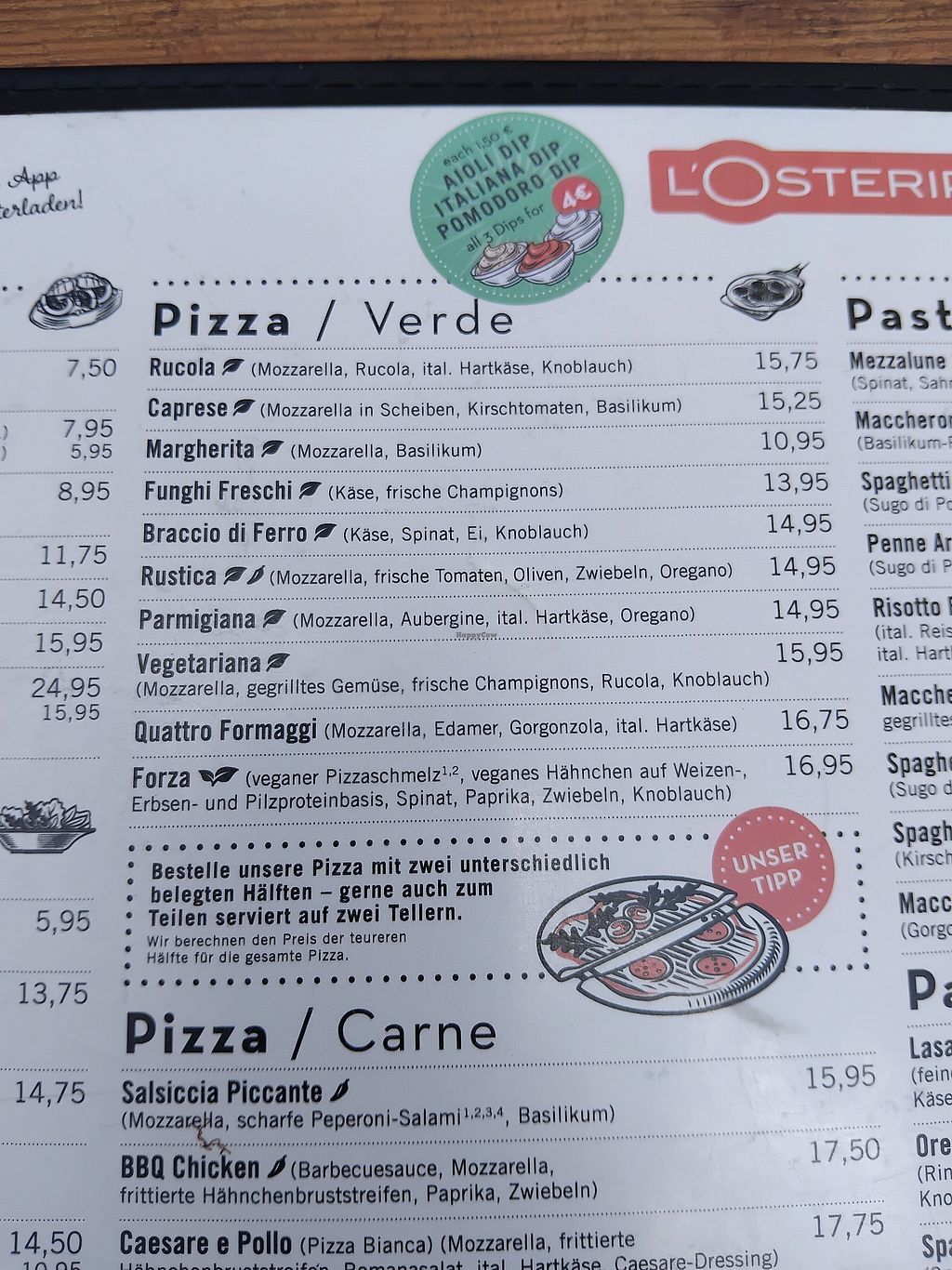 Gute Auswahl an veganen Optionen. Pizza kann mit veganem Käse bestellt werden und bei der Pasta gibt es auch ein paar Gerichte zur Auswahl.
