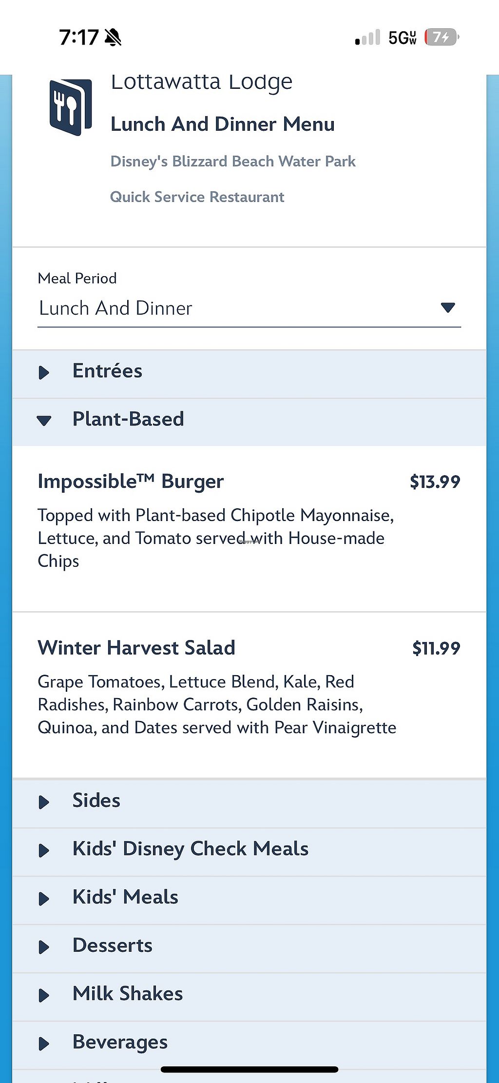 Good vegan options for a waterpark. Happy to see Disney adding plant based meals