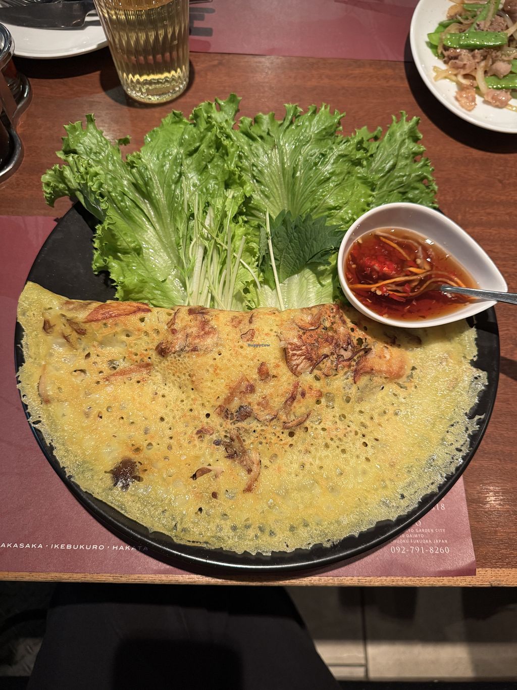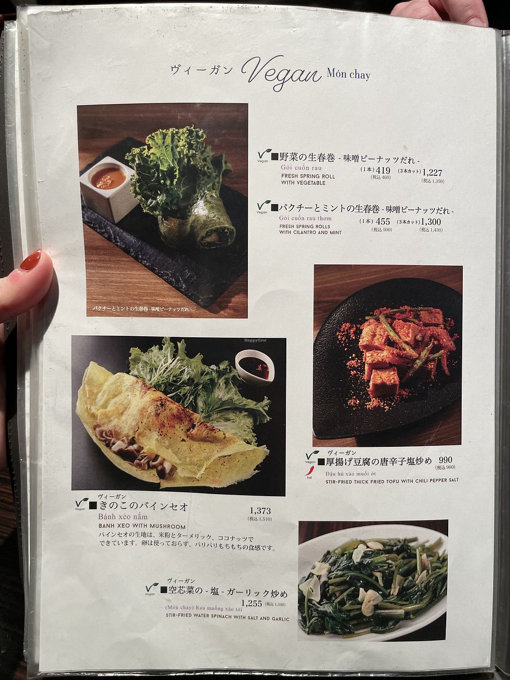 Nice location, they have a vegan menu, with some nice options. I tried the eggplant and the mushroom Banh Xeo, and both were good.