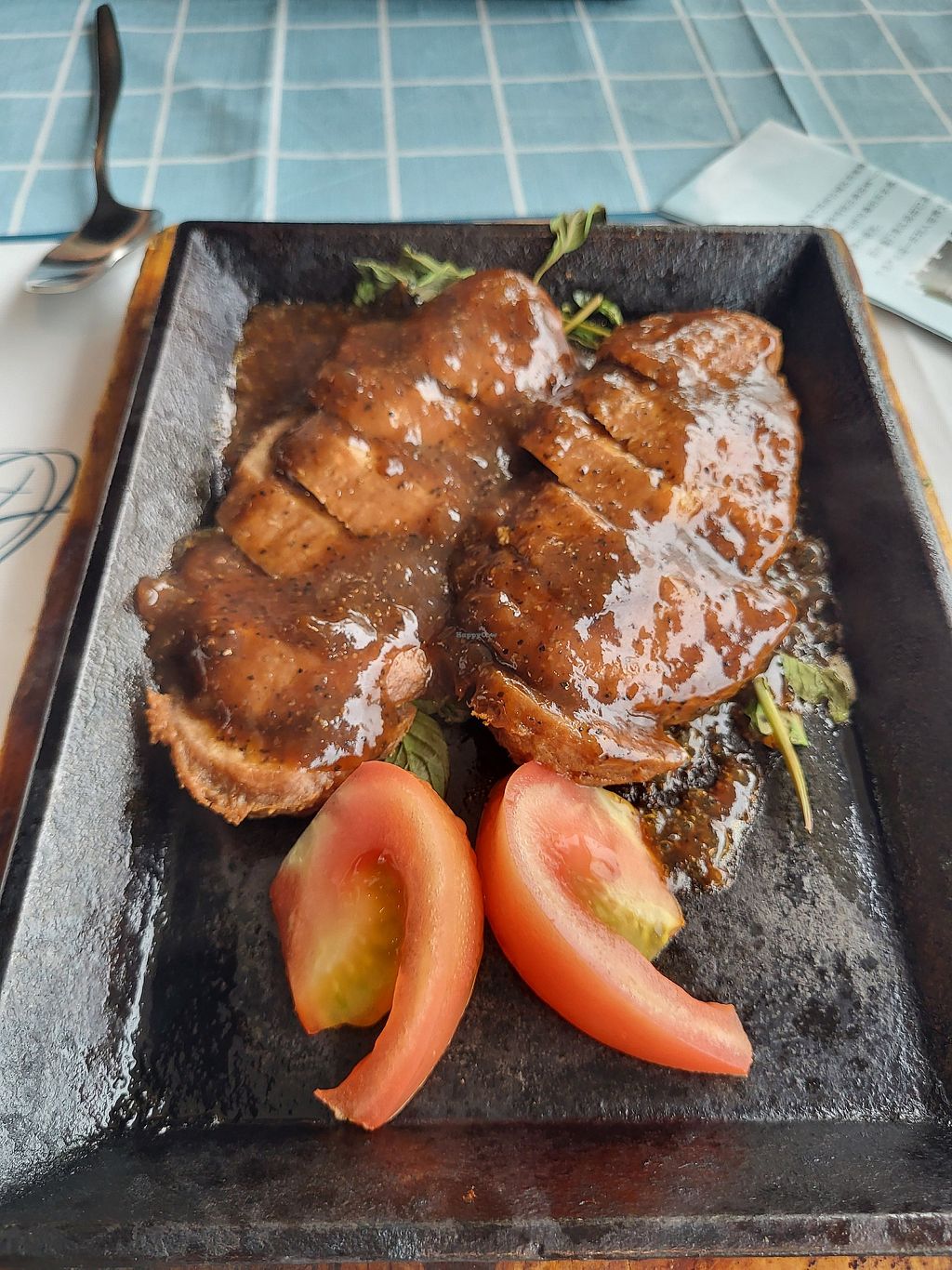 SweetSour spare ribs. Tofu skin pockets with veg. Apple juice. (82Y)