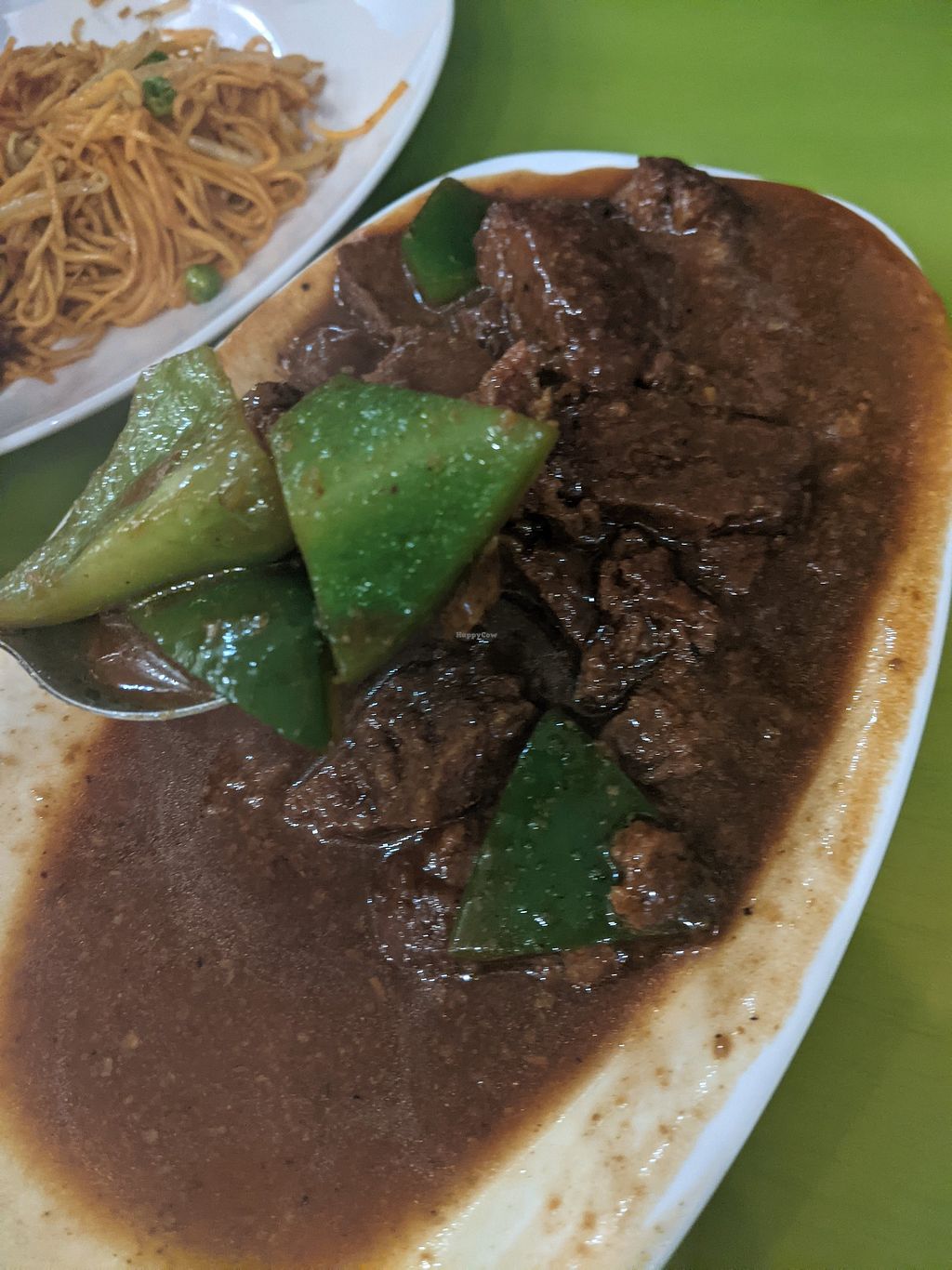 Vegan chicken curry and vegan beef and black bean sauce