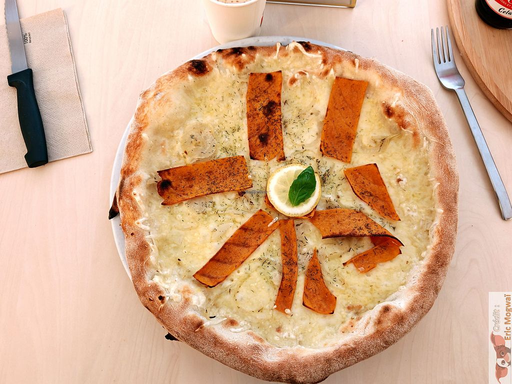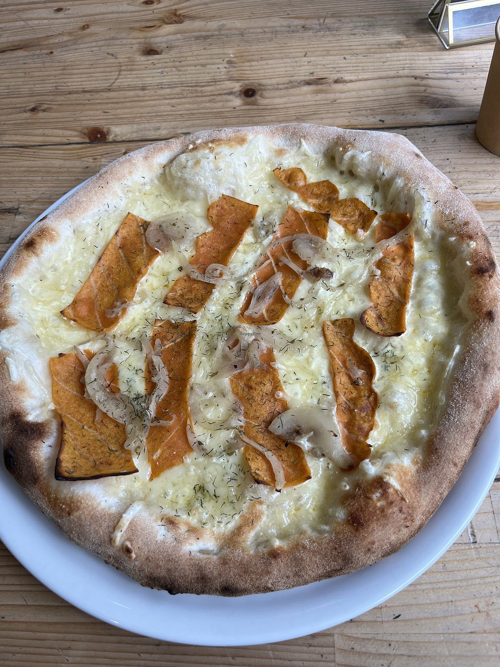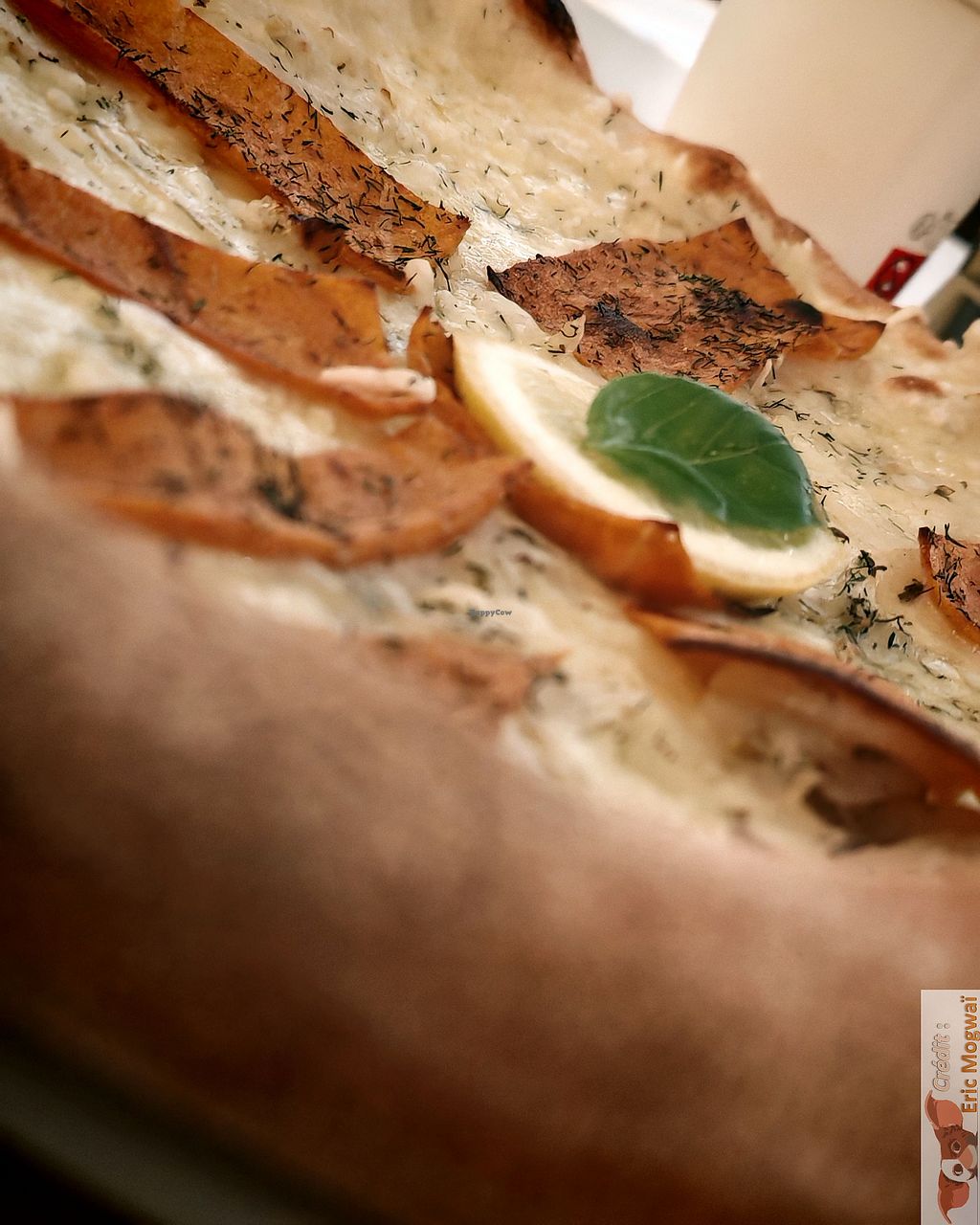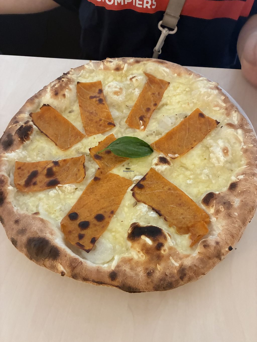 Excellente pizza du mois « saumon Vegan ». Une vraie proposition Végane : il y a du choix dans les ingrédients, il y a du choix dans les pizzas et les desserts, et la pâte est excellente ! Tout est au rendez-vous !