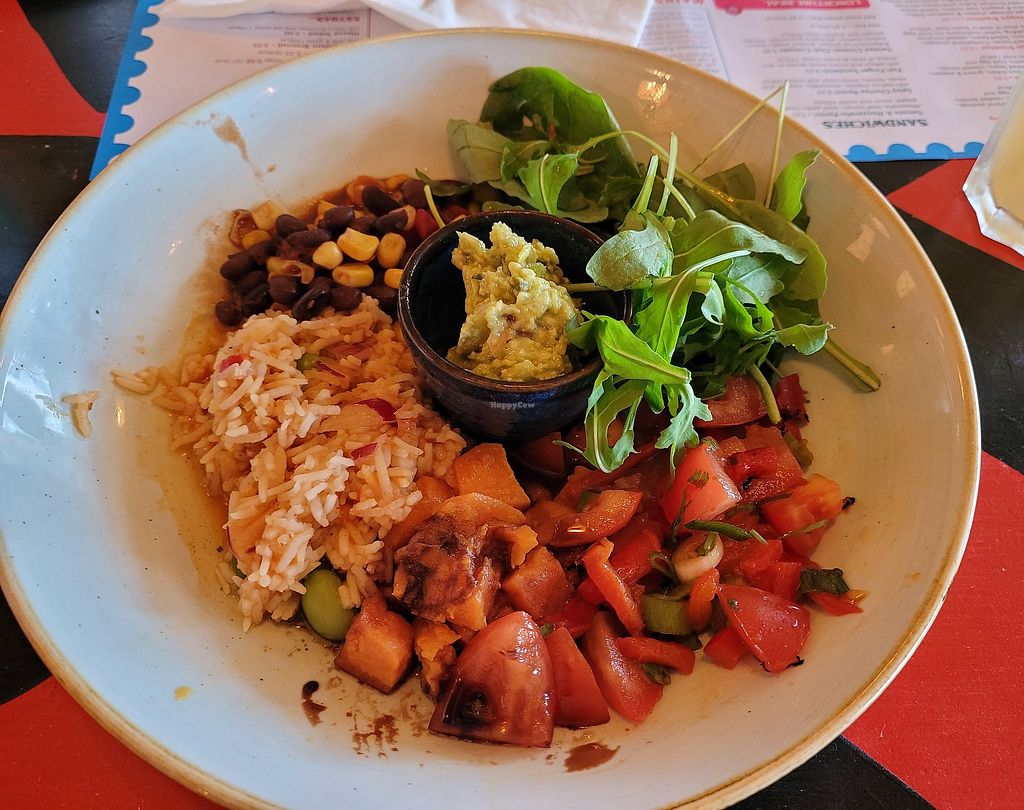 A lot of vegan options to choose from. There is a separate vegan menu you can ask for, or if scanning the table's menu QR code, there is a whole vegan section. Good mixture of the usual options (vegan breakfast, burger etc) but also some others. I had the Mexican superbowl and an oat milk latte. Can't fault either. Reasonable prices as well.