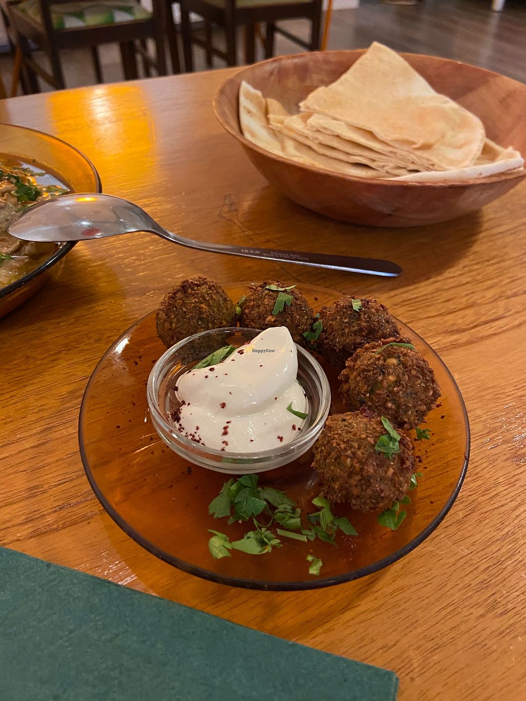 Broad beans, falafel, potato, pita
