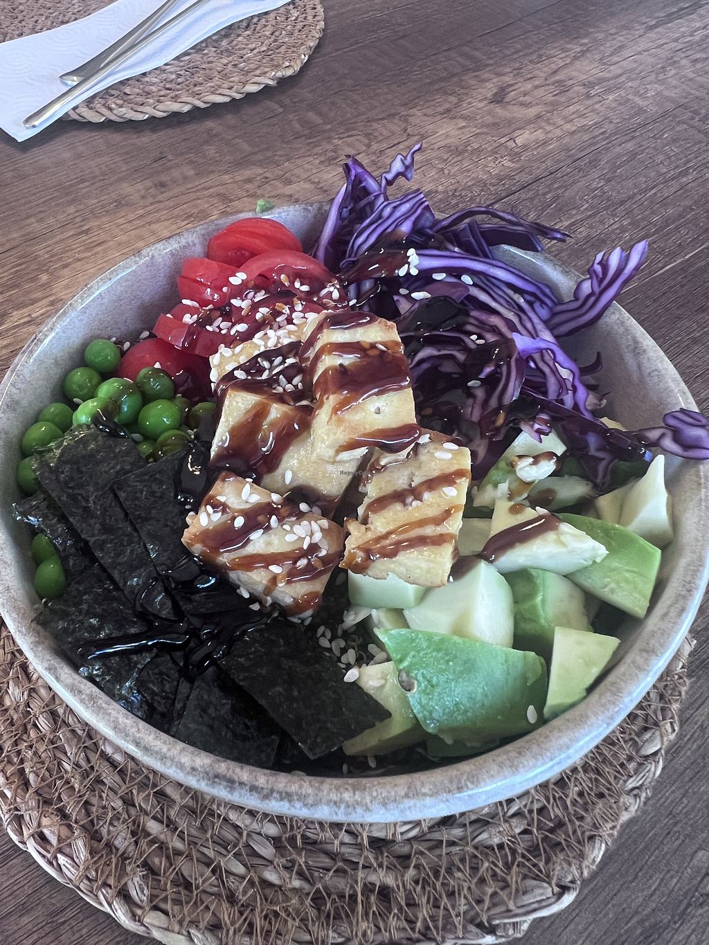 We had coffees. Smoothies, vegan bowl with tofu and avocado on toast.