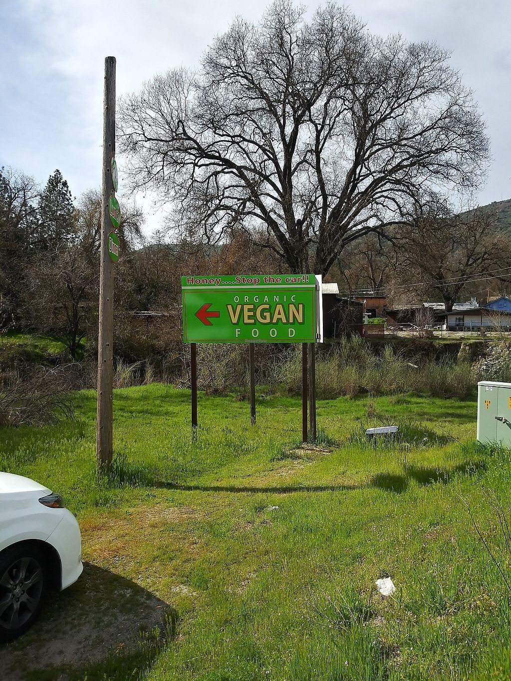 Vegan cafe opened 2018 near Yosemite. Serves breakfast and lunch with choices like vegan biscuits and gravy, pancakes, breakfast burrito, pulled 'pork' on a roll with coleslaw, chickn salad sandwich, mac n cheese, vegan burger and fries. Confirmed closed with plans to relocate, Mar 2021 - please send updates.