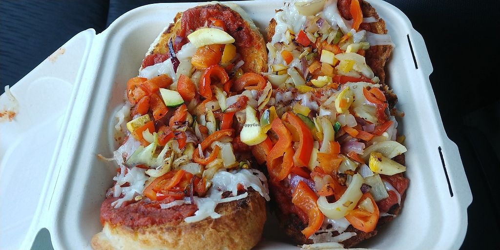 Pizza: not what we expected. A sub bread cut in 4 pieces with marinara, veggies and a tiny bit of cheese. The marinara wasn't great, but not terrible. This was edible.