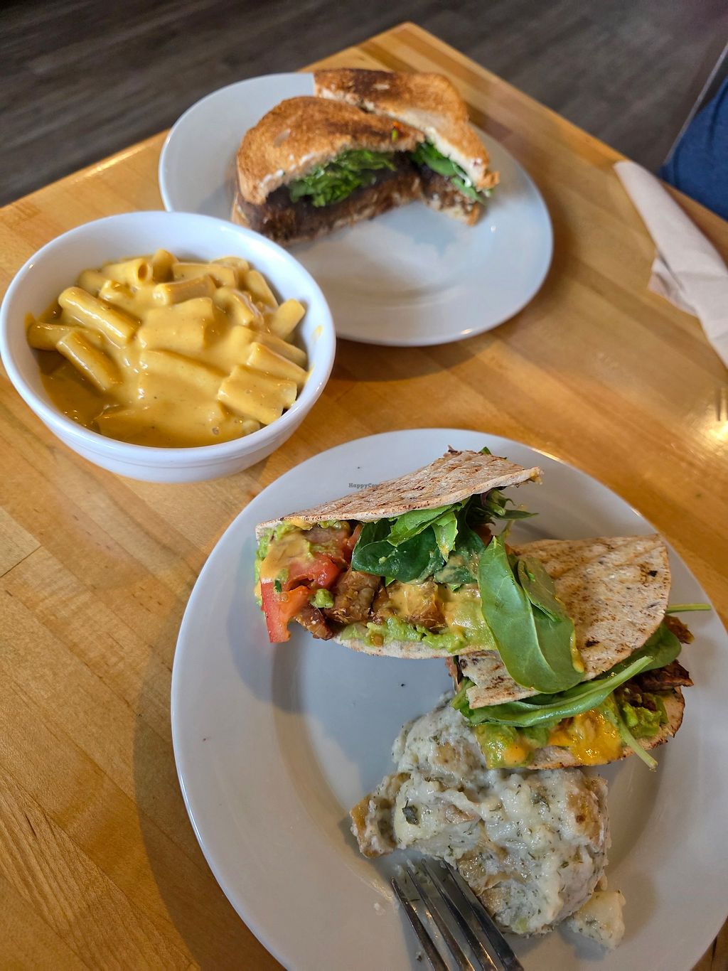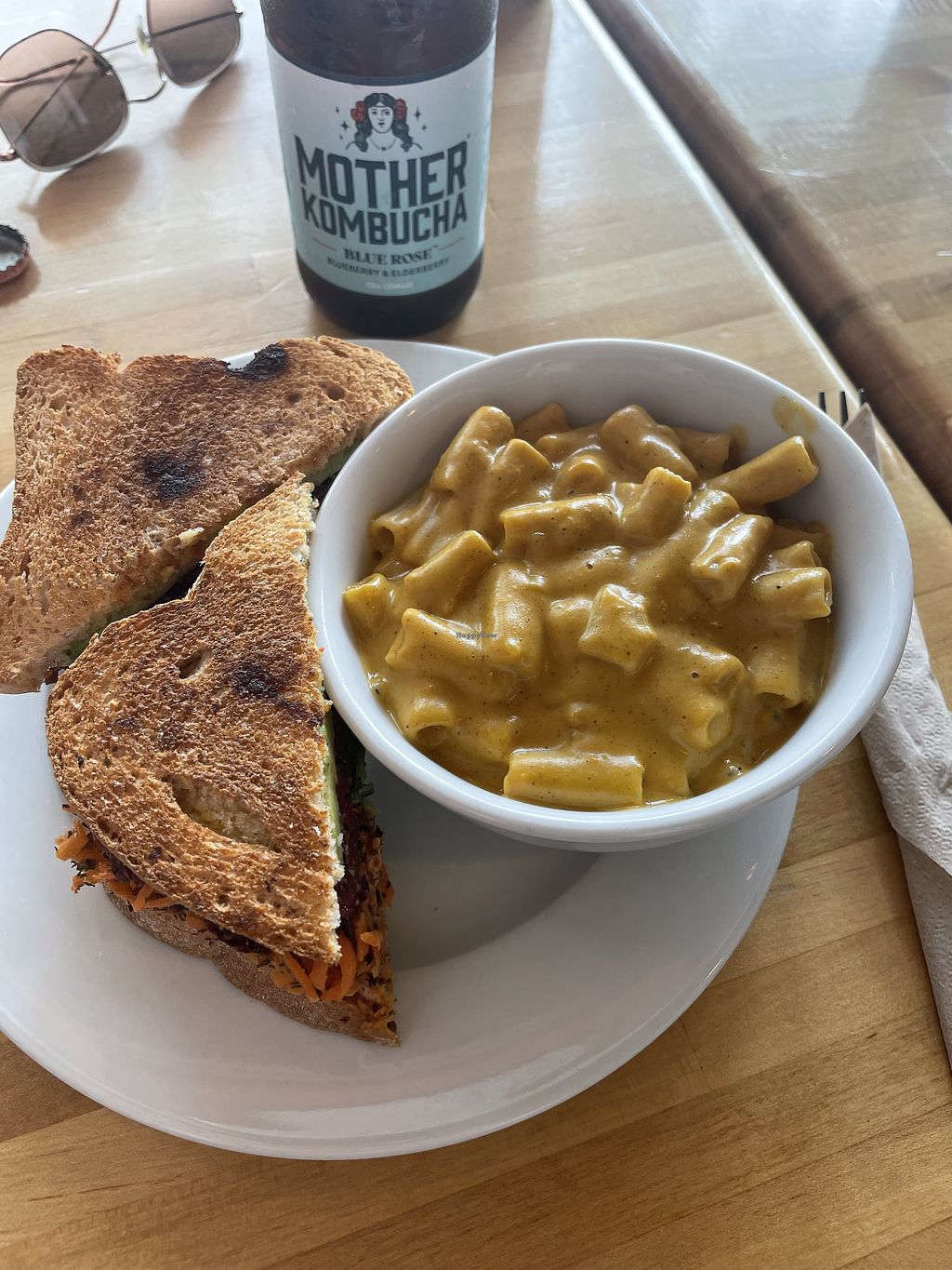 Nice smallish place in St Pete. I got their bahn mi with a side of mac and cheese. Excellent sandwich, but I also wanted to say the consistency of their mac n cheese was very good: not they gooey Daiya kinda cheese but I suspect something like sweet potato- or veg-based. It was pure comfort food and a larger serving than I thought. Spouse and I were both very full from our food, so the portions are definitely enough! He got the Cuban rueben, which I also tried a bite of. It was also excellent, entirely different from the bahn mi. Everything is made with great skill and love!