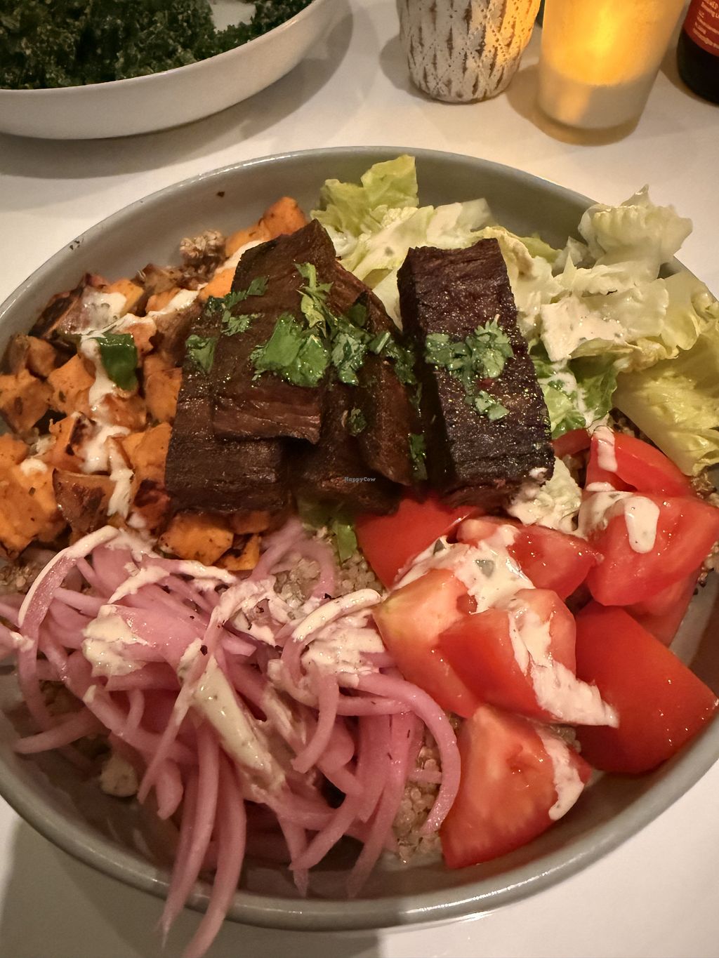this is the vegan steak cut apart so you can see the texture😄pretty su…