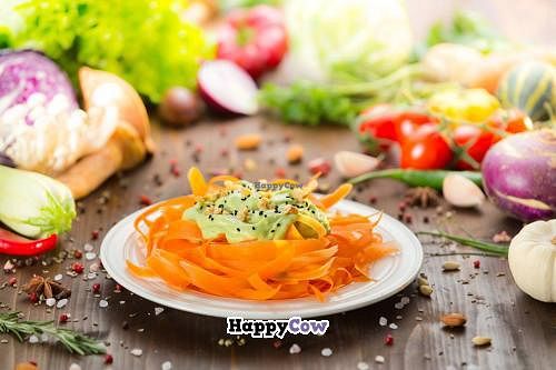 Carrot tagliatelle with avocado creamy souce and pesto