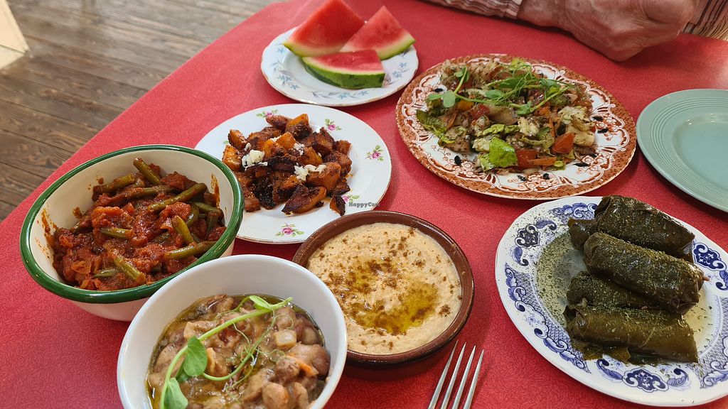 Delicious food for lunch. I shared 3 small plates plus hummus with my non vegan friend and it was so tasty. Great service. We had the chocolate truffle tart for pudding which was amazing and you wouldn't have known that it was vegan. Nice coffee in good size mugs too.