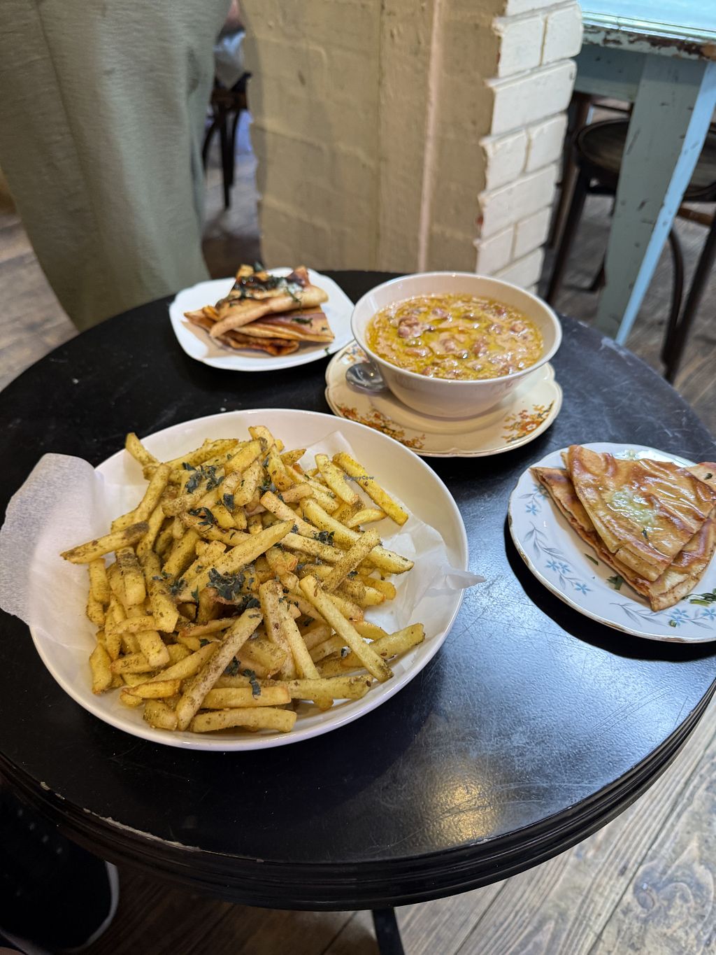 Got the bubble & squeak with beans and lemon spinach. I'd never had this dish before and I loved it so much! My partner got the bravas quesadilla and it was lovely as well. We had the banoffee cake for dessert, also a 10/10. I'll be back! We were so hungry we forgot to take pictures before eating. They rotate the menus so might find a completely different one every time you go, which to me is a plus.