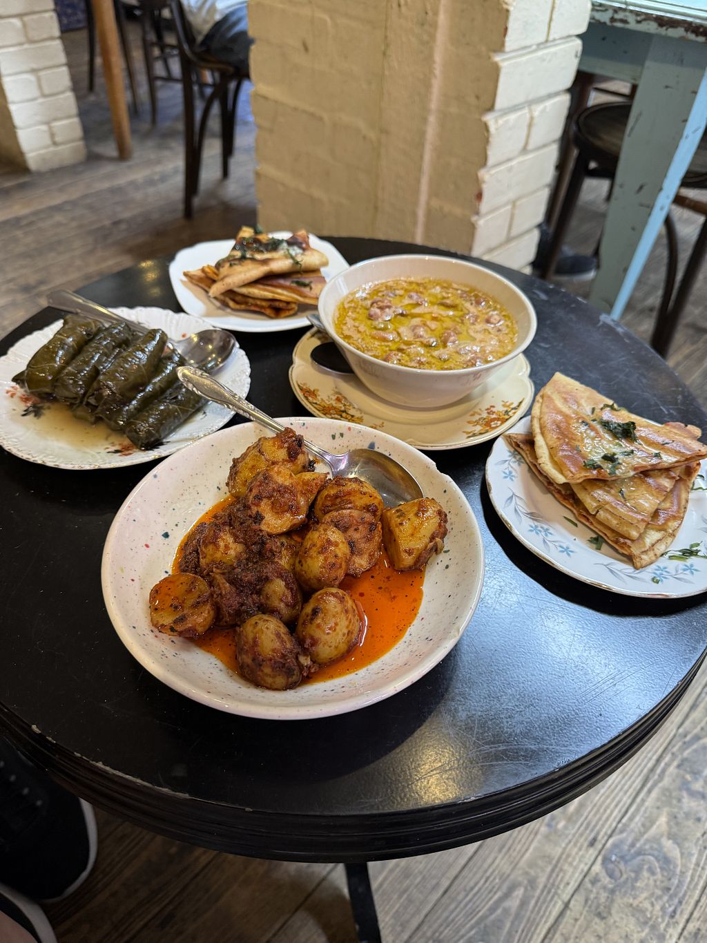 Excellent food and friendly staff. Stuffed vine leaves with hummus and toast plus spicy yellow lentil soup. And the choc browny was unbelievable!!