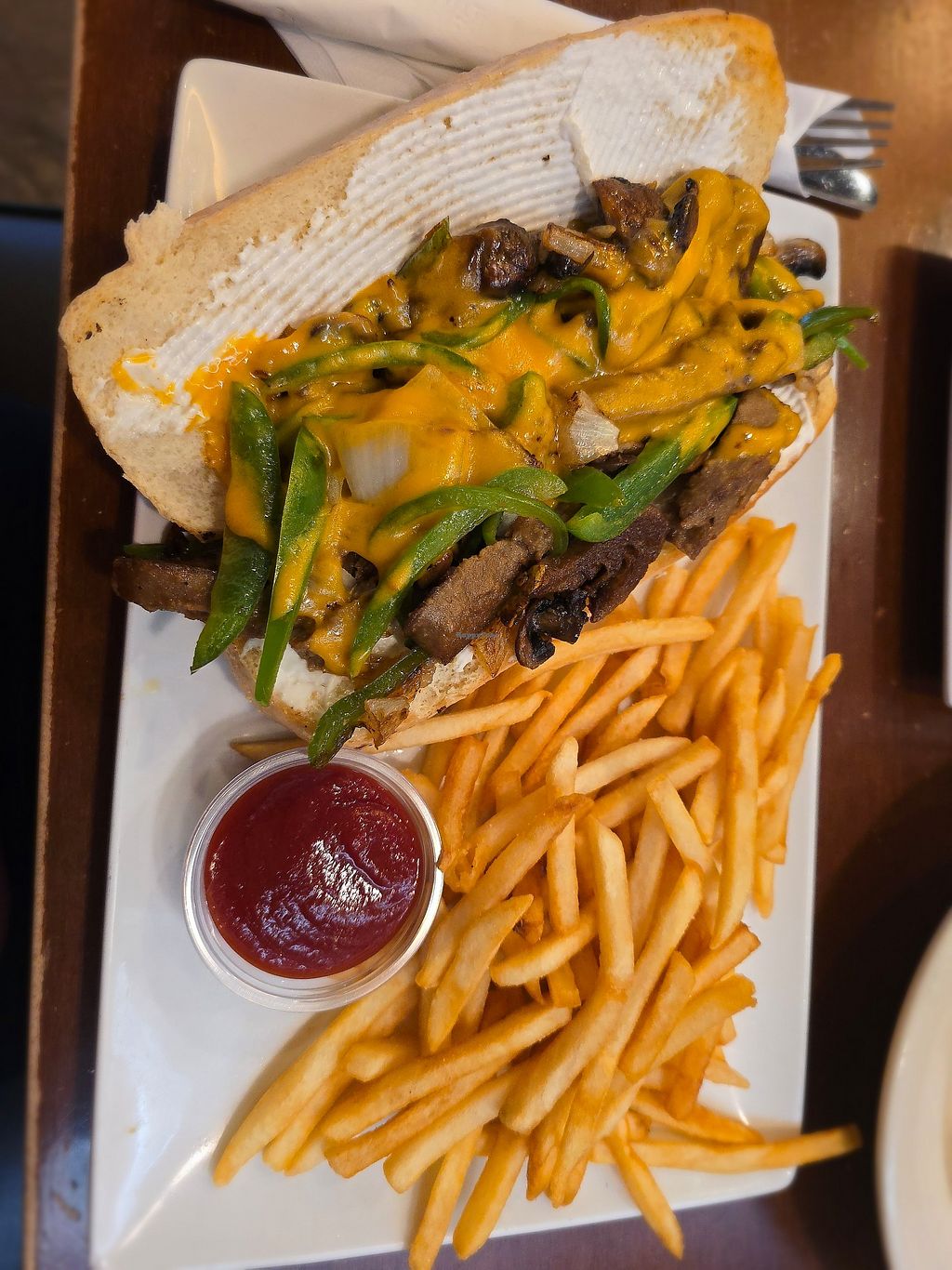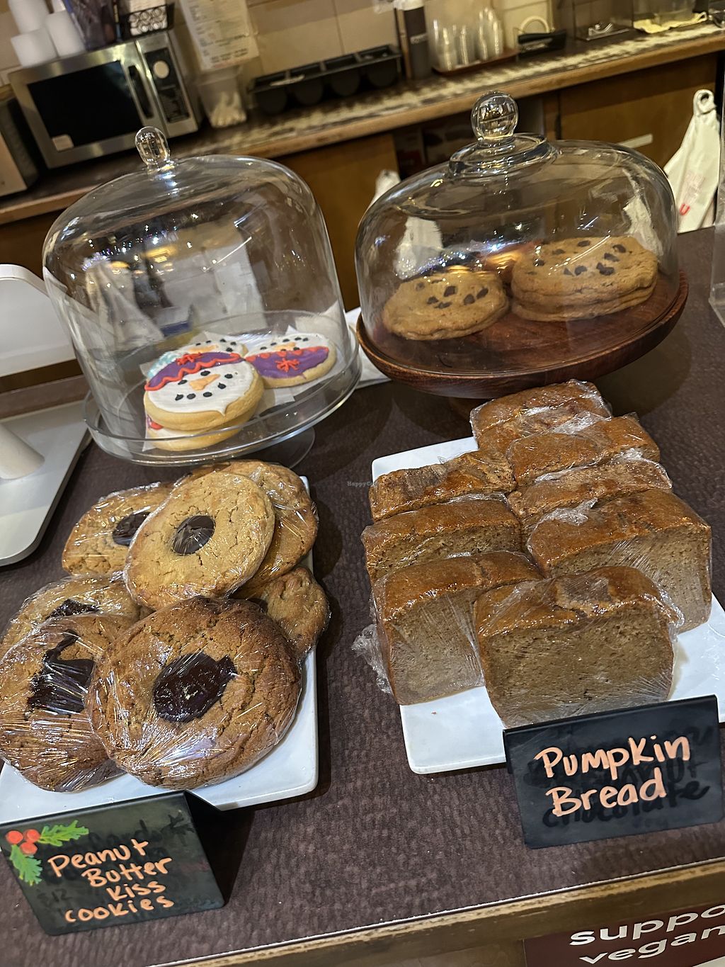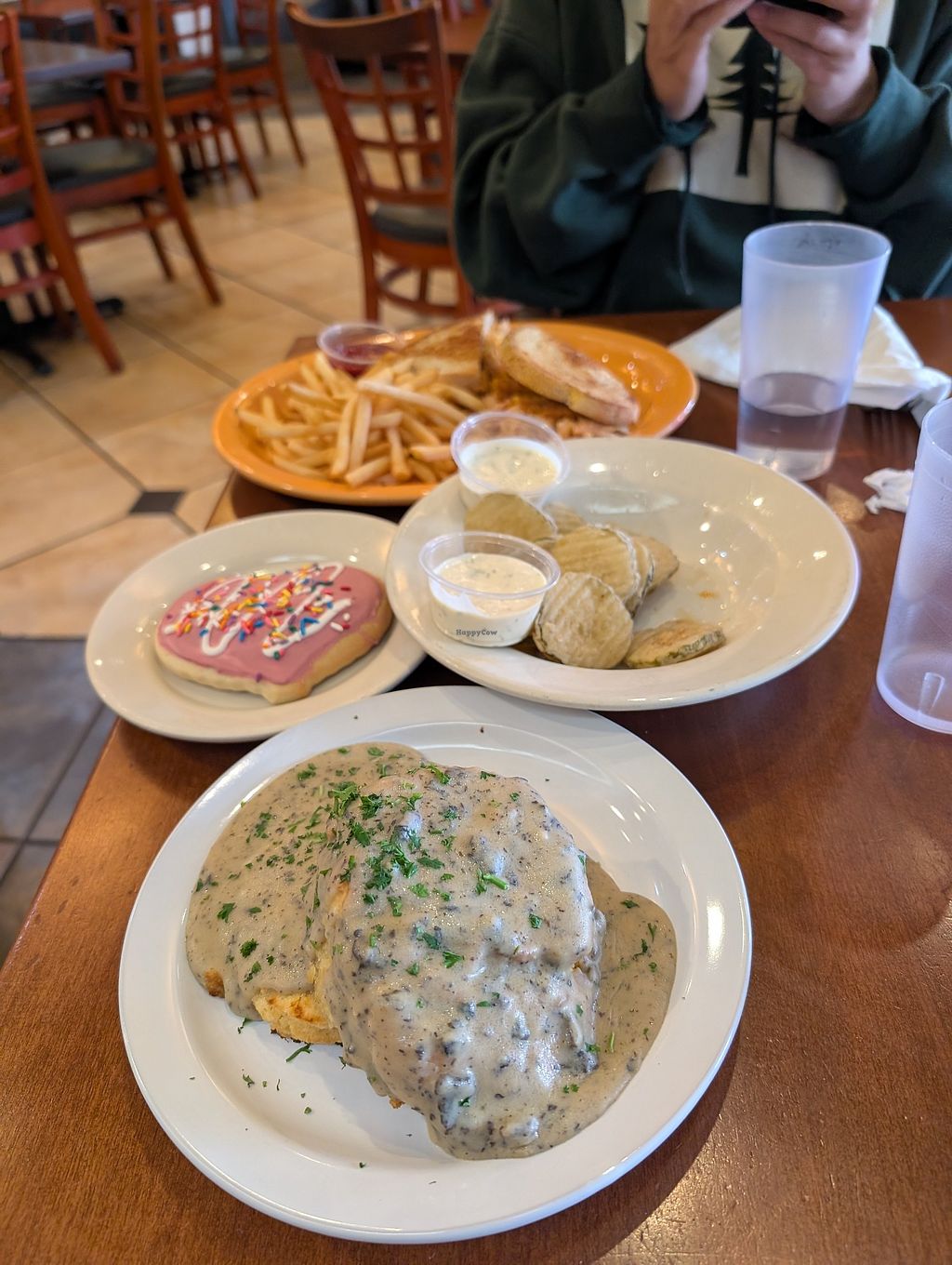 Nice options for dinner, even for a fussy family member that likes meat. Enjoyed the Garlic and Mushroom burger. Nut Loaf was nice too, the sides with it not so much. Parents enjoyed the Linguine and Meatballs and the Buffalo Chicken Sandwich. Although full due to the large servings we had to try the great looking desserts. Took a cake and cookie home and they were good too the next day.