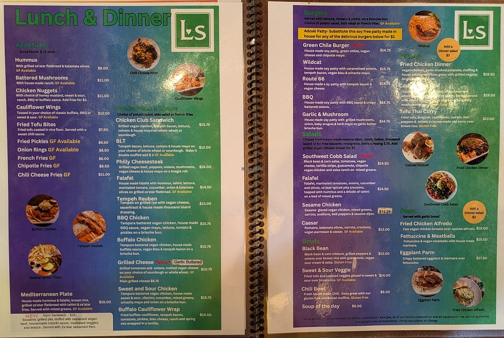 Extensive menu for anything you may be craving. Everything tasted great, portions were huge, lots of dessert options and everything is vegan!