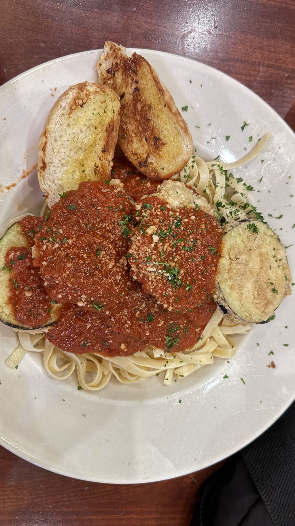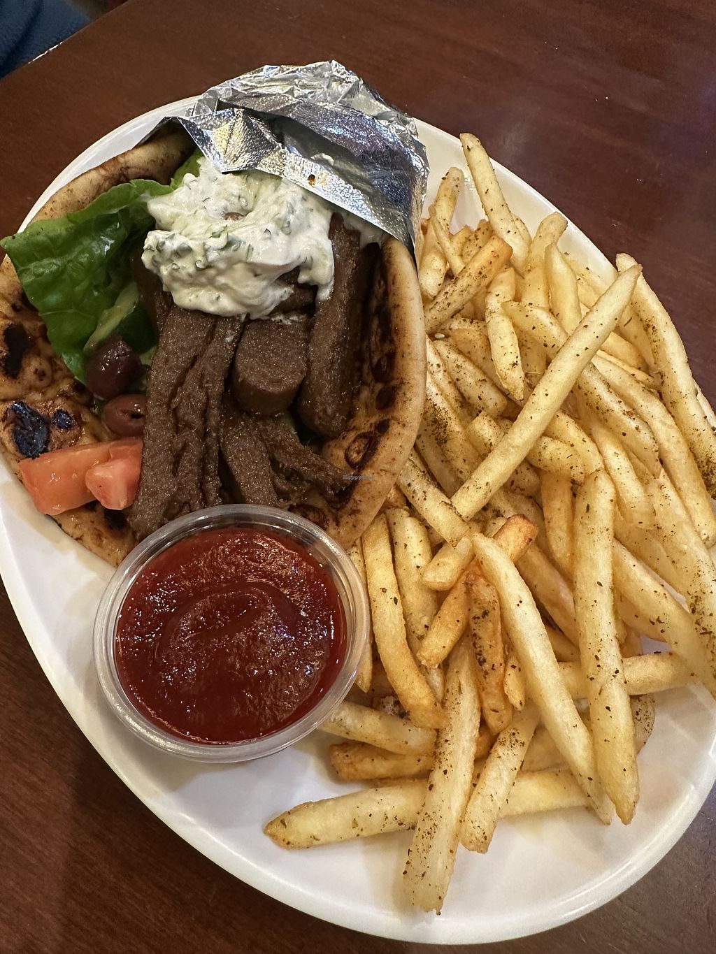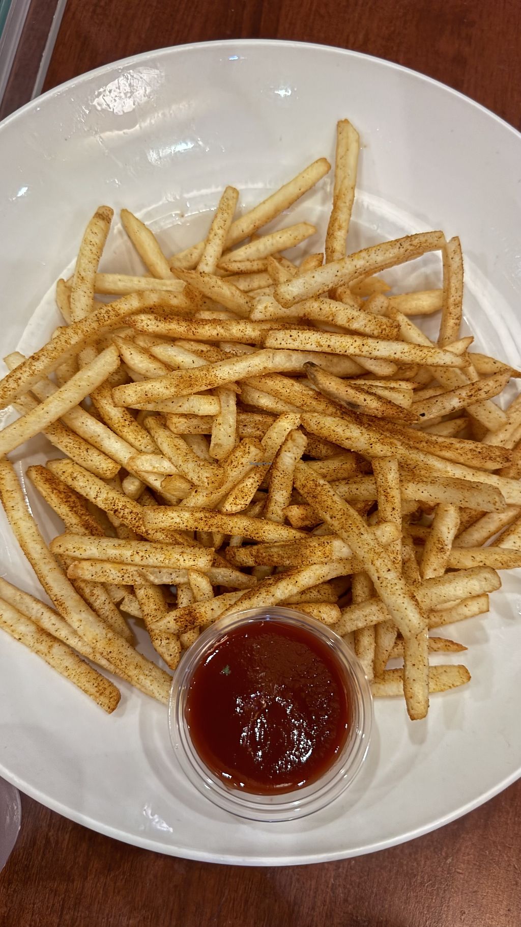 Food service was amazing! I love finding an all-vegan restaurant while traveling. We had the eggplant Parmesan with marinara sauce, the sweet-and-sour veggies, and shared the chipotle fries — everything was delicious.