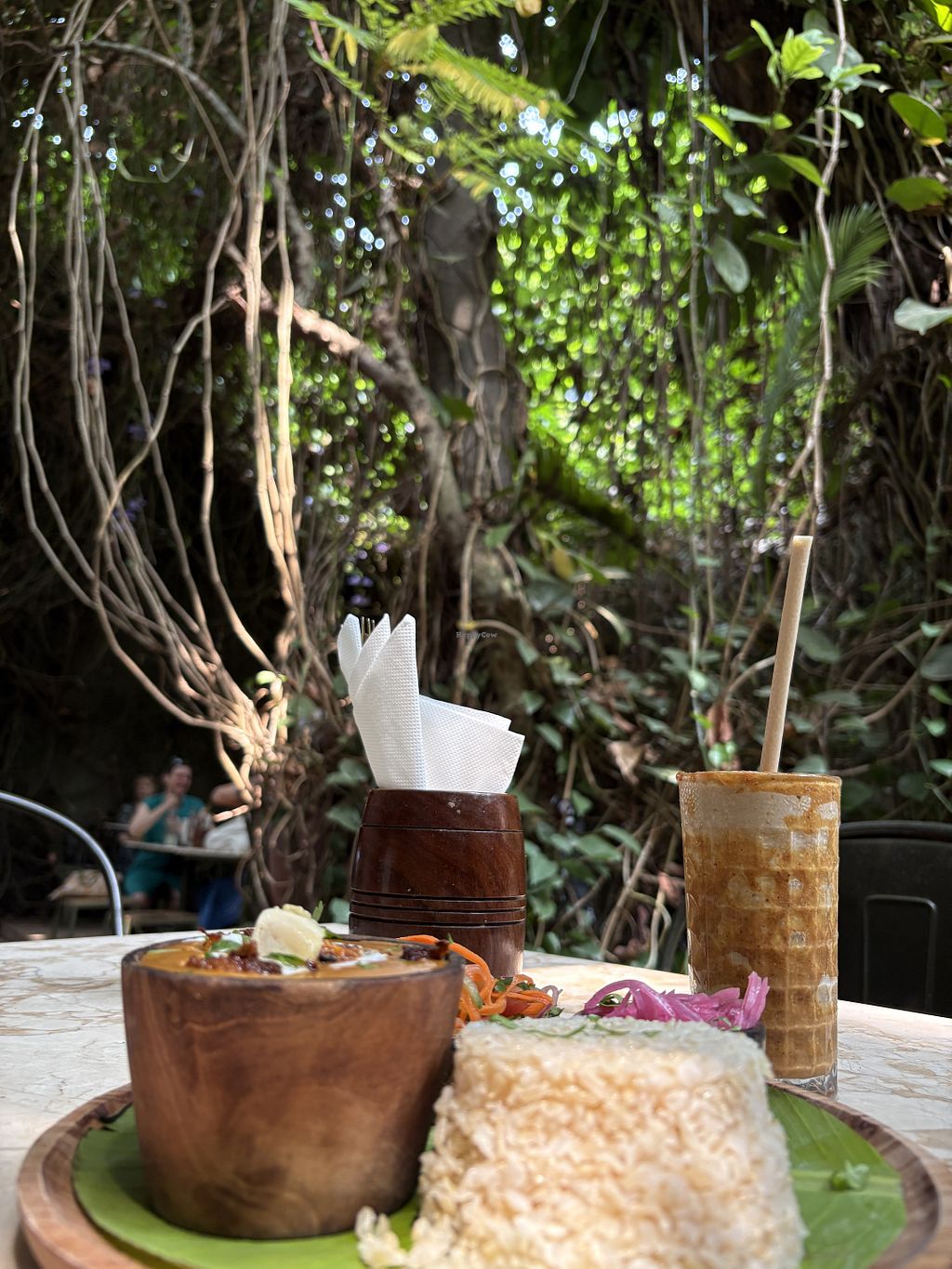 Een rustig restaurant met een tuin, waar een heerlijke sfeer heerst. Het is fantastisch dat het vegan is na het overal steeds uit te moeten leggen, hier een keer niet. Het eten was heerlijk